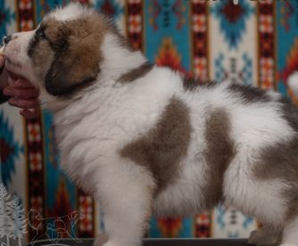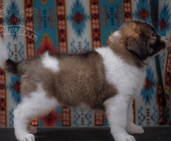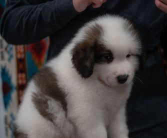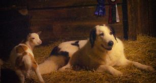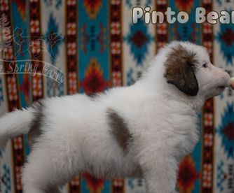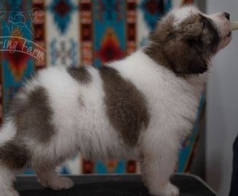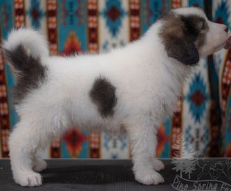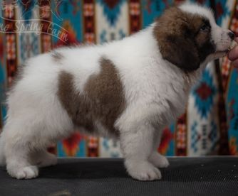 Falkor is a young, promising livestock guardian with an amusing ability to bond with the larger livestock on the farm. His best friends are 'Monty' the mule and 'Augie' the highland bull calf, and they enjoy playing "follow the leader" all day. He is still maturing, but Falkor has become our main sentry on the farm. He is first to alert, and all the animals understand his alarm bark means to run to safety. He's also our biggest cuddler and will probably always consider himself a lap dog regardless of his size. Falkor has strong opinions but is also enthusiastic to do what is asked of him, a rare occurrence in livestock guardians. He's still working on his show titles, but thus far captivates judges and spectators at every show he attends.