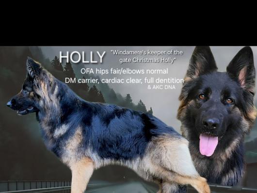 Holly is a sweet girl with such a mellow, carefree personality and is absolutely stunning! Holly displayes such neutrality to dogs and anyone she meets (including kids!) & she is one of the smartest GSDs I've had the pleasure to spend time with!