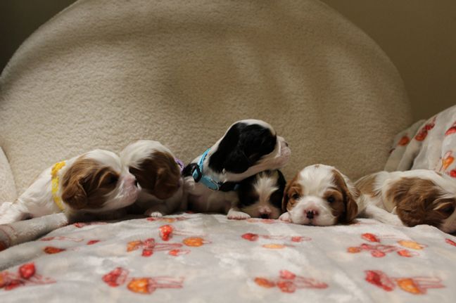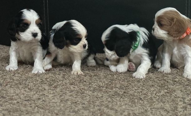 Our puppies include blenheim and tri-color. Colors will vary depending on the parent dogs.