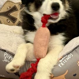 Luna is a female Border Collie. Carefully selected as a great representative of her breed, Kaylie decided to make her part of their program. Kaylie has passed Good Dog’s screening process, which involved a review of their breeding practices, environment, and the mental and physical health of their dogs.