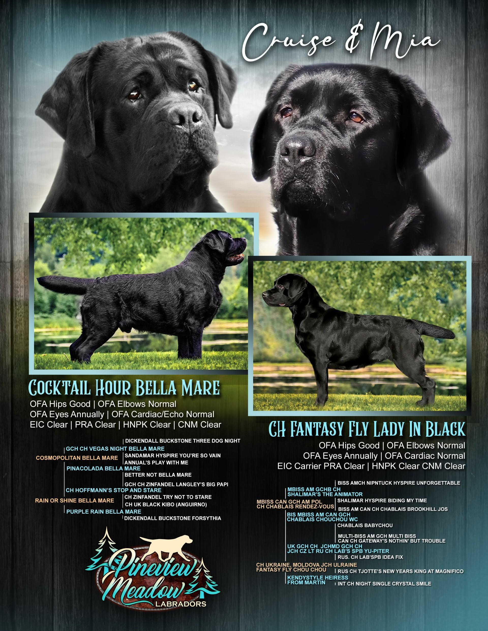 Our puppies include black, chocolate, and yellow. Colors will vary depending on the parent dogs.