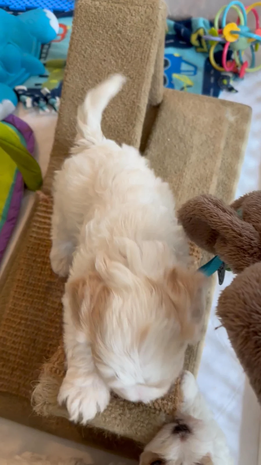 Cami is a daughter of our Joy and Clancy. She is a sweet, lovable Cavapoo that we raised here. She is level-headed but playful and loves to snuggle.