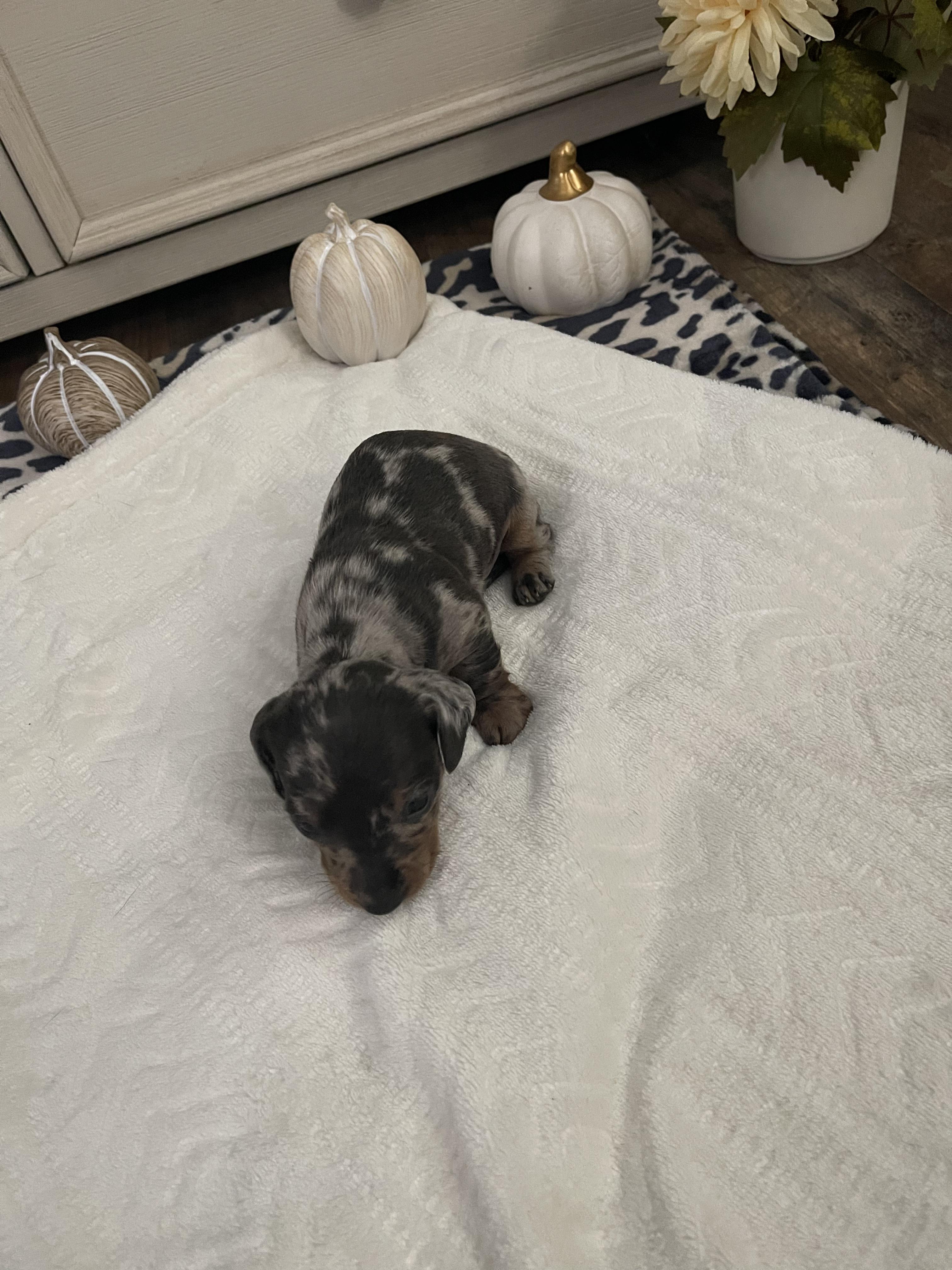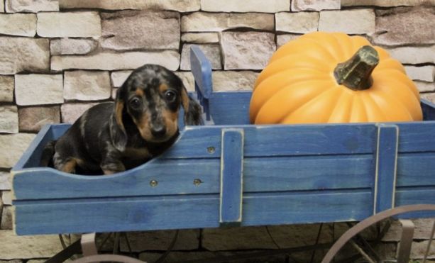 Our puppies include chocolate and tan, black and tan, and dapple. Colors will vary depending on the parent dogs.