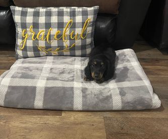 Ace may only stand a few inches tall, but his confidence is taller than a Great Dane’s! Known for his dramatic sighs, expert-level blanket burrowing, and fierce loyalty to his favorite humans, this little sausage is all heart. When he’s not patrolling the house for dropped snacks, he can be found sunbathing in the perfect warm spot or snuggled up in a lap like it’s his royal throne.