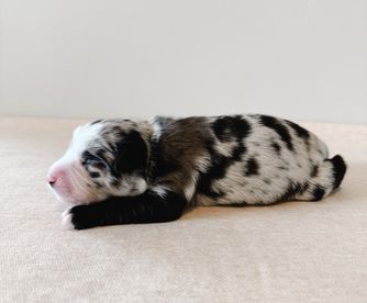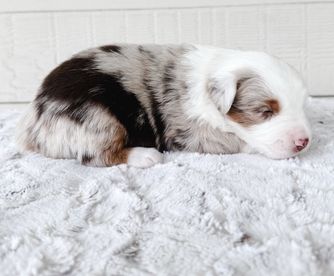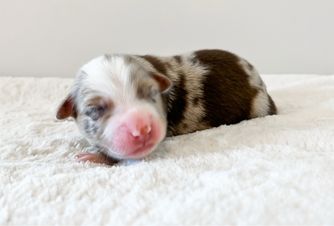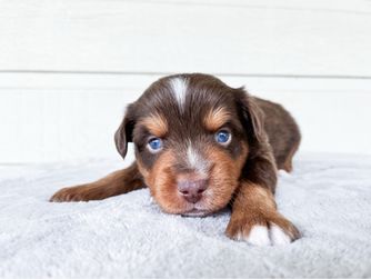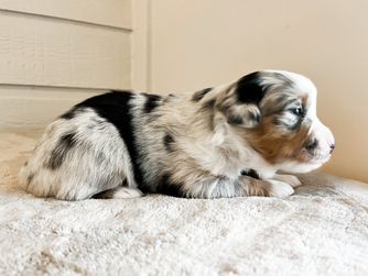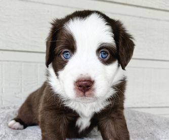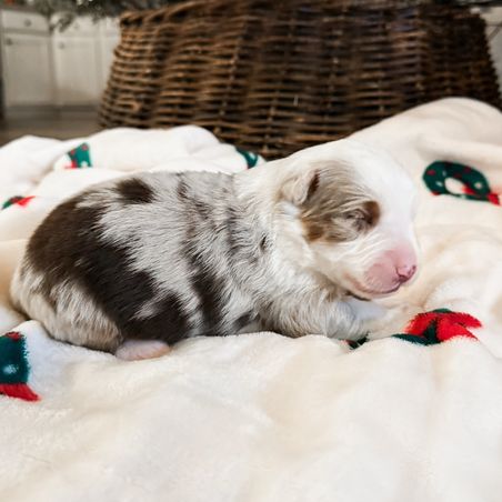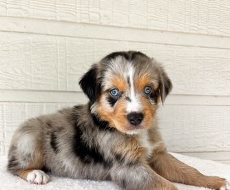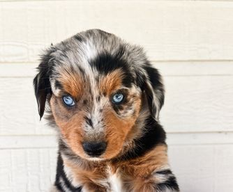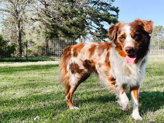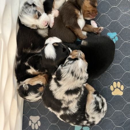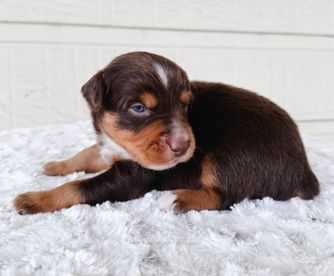 Our Miniature Australian Shepherd puppies include red tri and red merle. Colors will vary depending on the parent dogs.