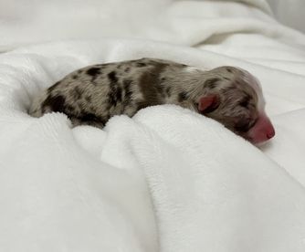 Rooster is a male Toy Australian Shepherd. Carefully selected as a great representative of his breed, Haley decided to make him part of their program. Haley has passed Good Dog’s screening process, which involved a review of their breeding practices, environment, and the mental and physical health of their dogs.