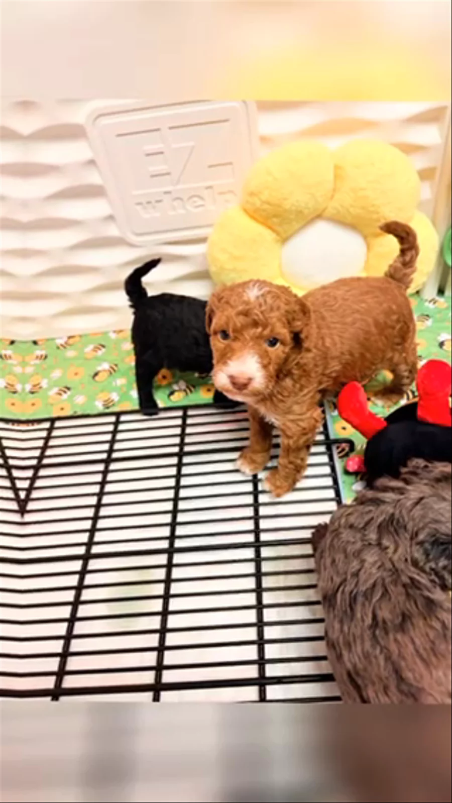 Introducing Strawberry, our gorgeous dark red Toy Poodle and a promising upcoming female in our breeding program! Strawberry boasts a deep, luxurious red coat that truly turns heads, paired with a charming, playful personality. She is affectionate, intelligent, and eager to learn, making her a wonderful companion and a delight to be around. We are thrilled to watch Strawberry grow and look forward to the outstanding qualities she will contribute to our future litters.