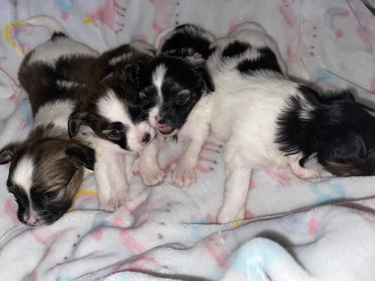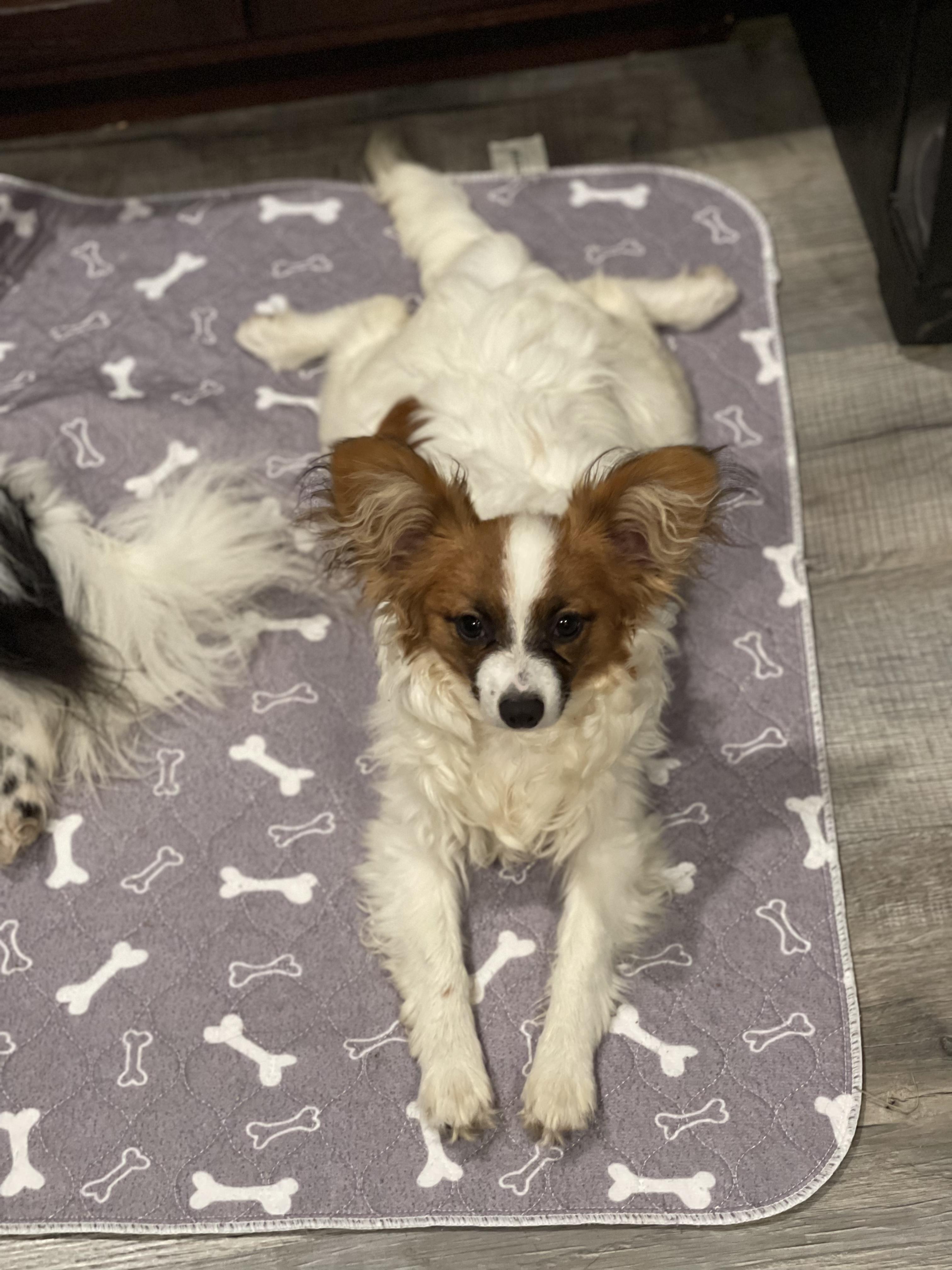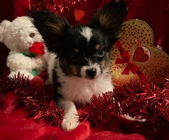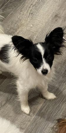Glimpses last pup- Yankee (male) black and white all shots and neutered. Just under a year old. He is absolute great boy. Loves everyone and gets along great with other papillons adults and babies. Call or Text for more information