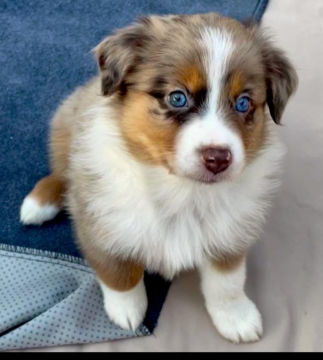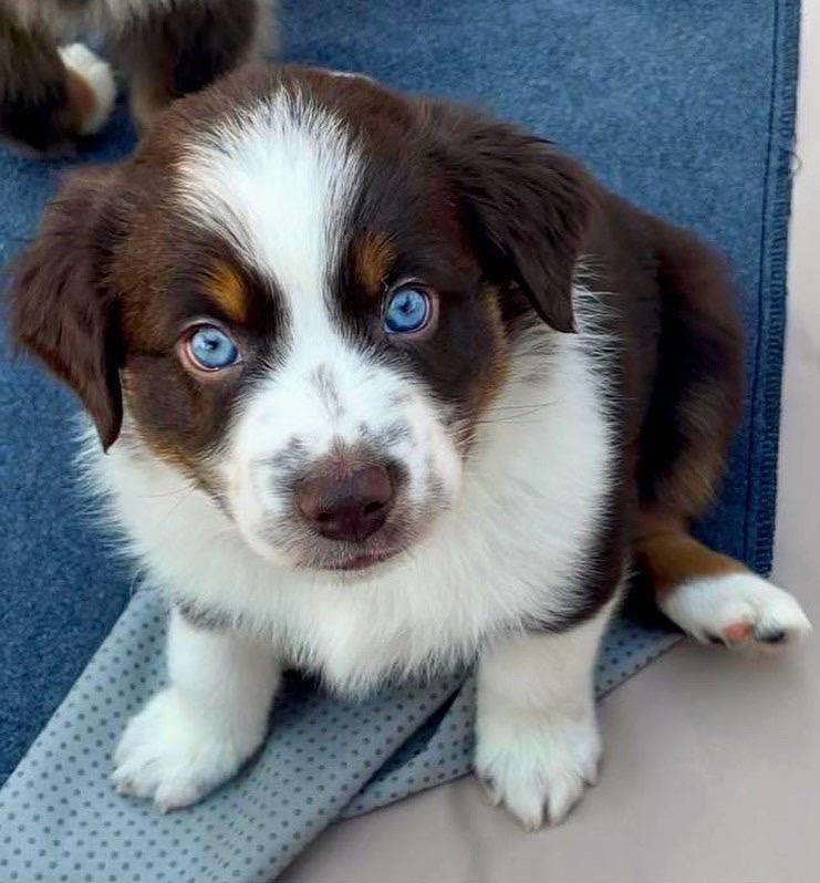Our puppies include blue merle, black tri, red tri, and red merle. Colors will vary depending on the parent dogs.