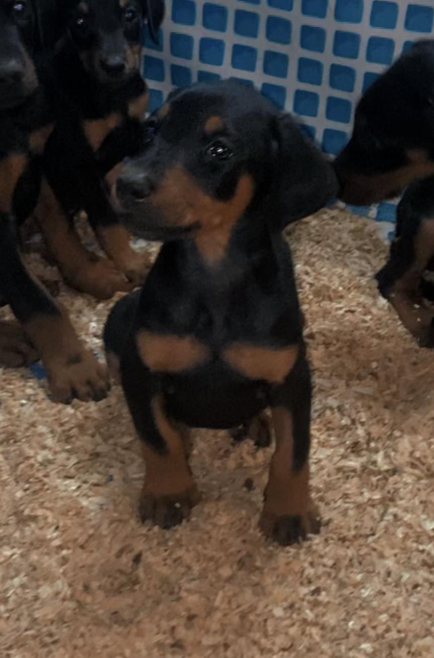I'm David C., the breeder behind Pipe Creek Dobermans located in Alexandria, IN. We hold ourselves to high standards for the integrity of our program. All of our puppies are socialized, nurtured, and loved! We give our puppies the best start possible so they’re set up to succeed as well-socialized, trainable, and wonderful additions to any family.