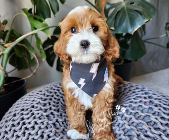 Minnie is a female Cavapoo. Carefully selected as a great representative of her breed, Wende decided to make her part of their program. Wende has passed Good Dog’s screening process, which involved a review of their breeding practices, environment, and the mental and physical health of their dogs.