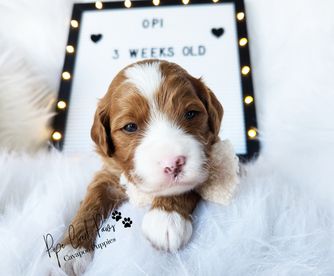 Maybelline is a female Cavapoo. Carefully selected as a great representative of her breed, Wende decided to make her part of their program. Wende has passed Good Dog’s screening process, which involved a review of their breeding practices, environment, and the mental and physical health of their dogs.