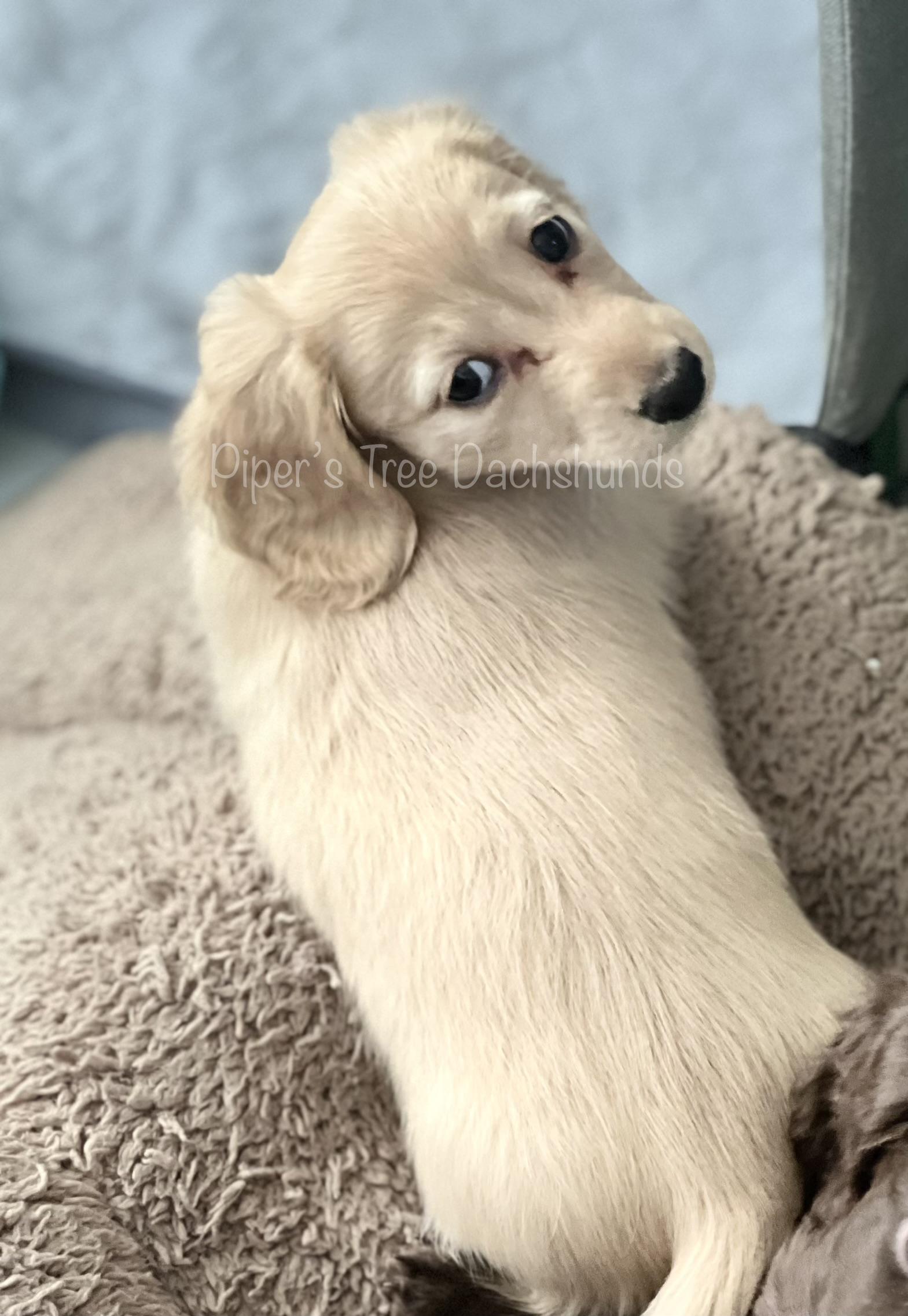 Sassy is our first beautiful silky wire longhaired dachshund. We can’t wait to see the gorgeous pups in her future when she is old enough to join our breeders.