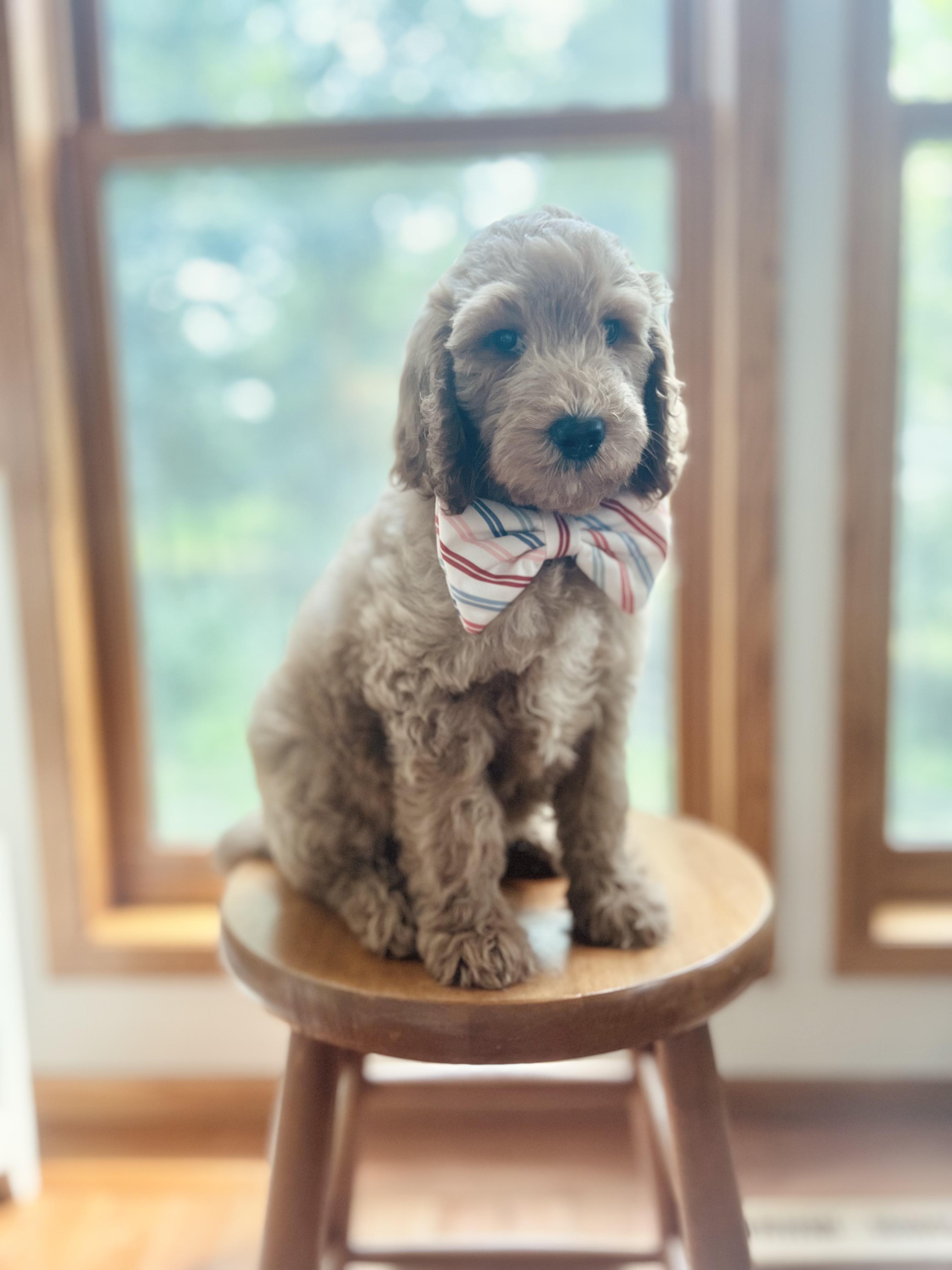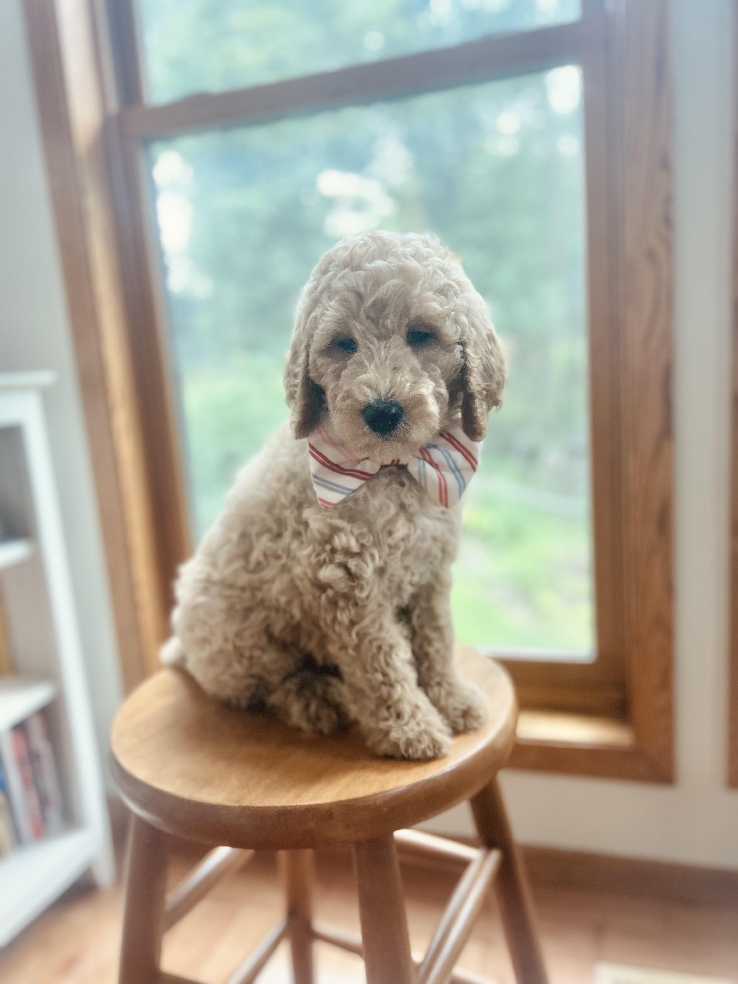 Two sweet boys available from Pippi’s litter. These F1bb pups are •adorable• and have been so much fun to watch grow! We can’t wait to see whose home they land in 🐶