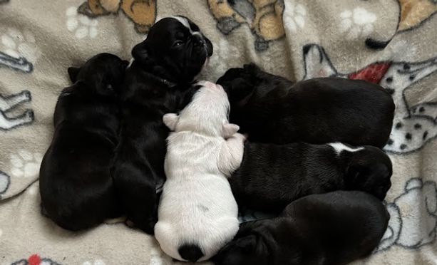 Our puppies include brindle, black and white, and white and black. Colors will vary depending on the parent dogs.