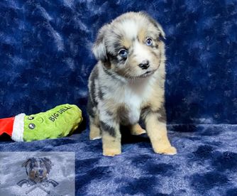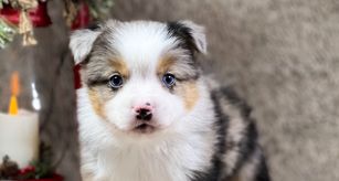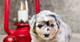 Our Miniature Australian Shepherd puppies include red & white, black & white, blue merle, black tri, red tri, red merle, red, and black. Toy Australian Shepherd puppies include red, black, black tri, blue merle, red merle, and red tri. Colors will vary depending on the parent dogs.