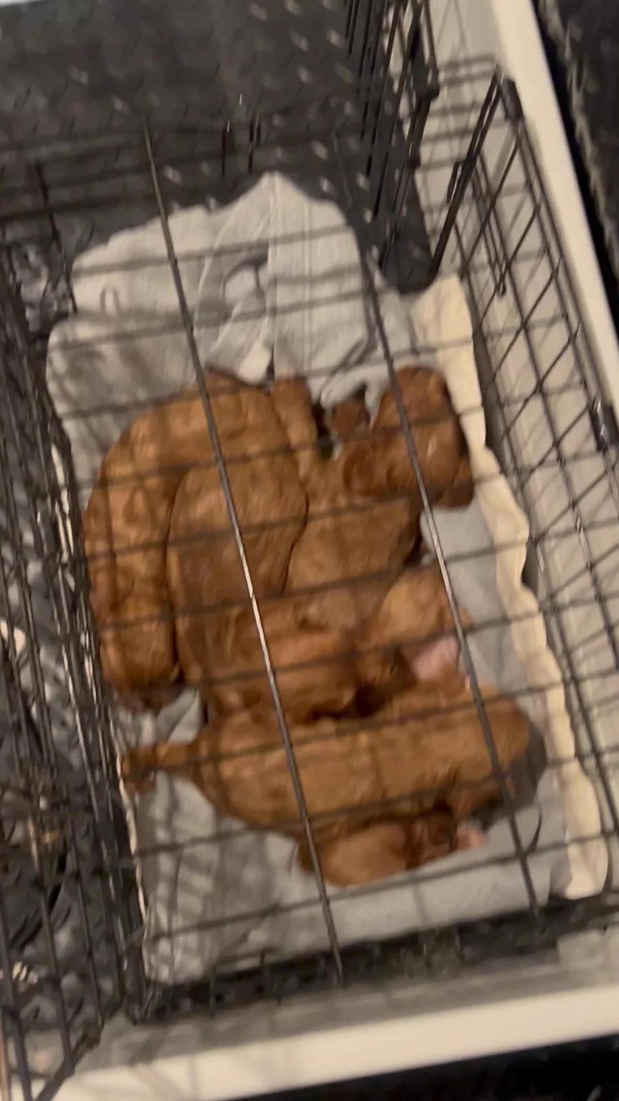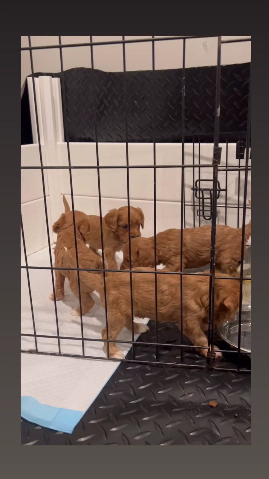 These pups are thriving in their crates! Sleeping 5 hrs at night and going home this week. We are going to miss them!