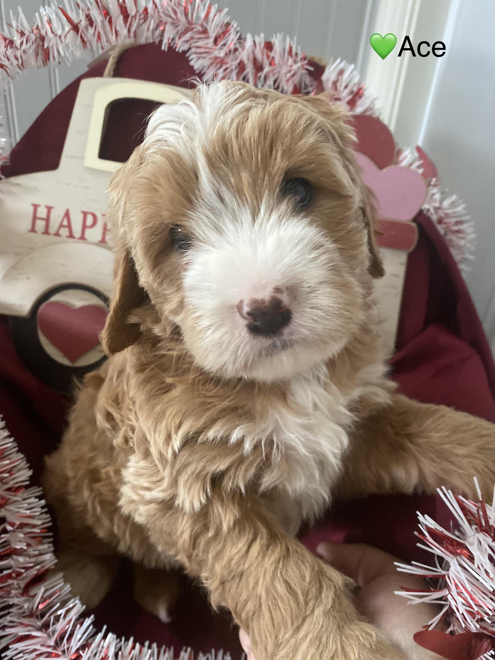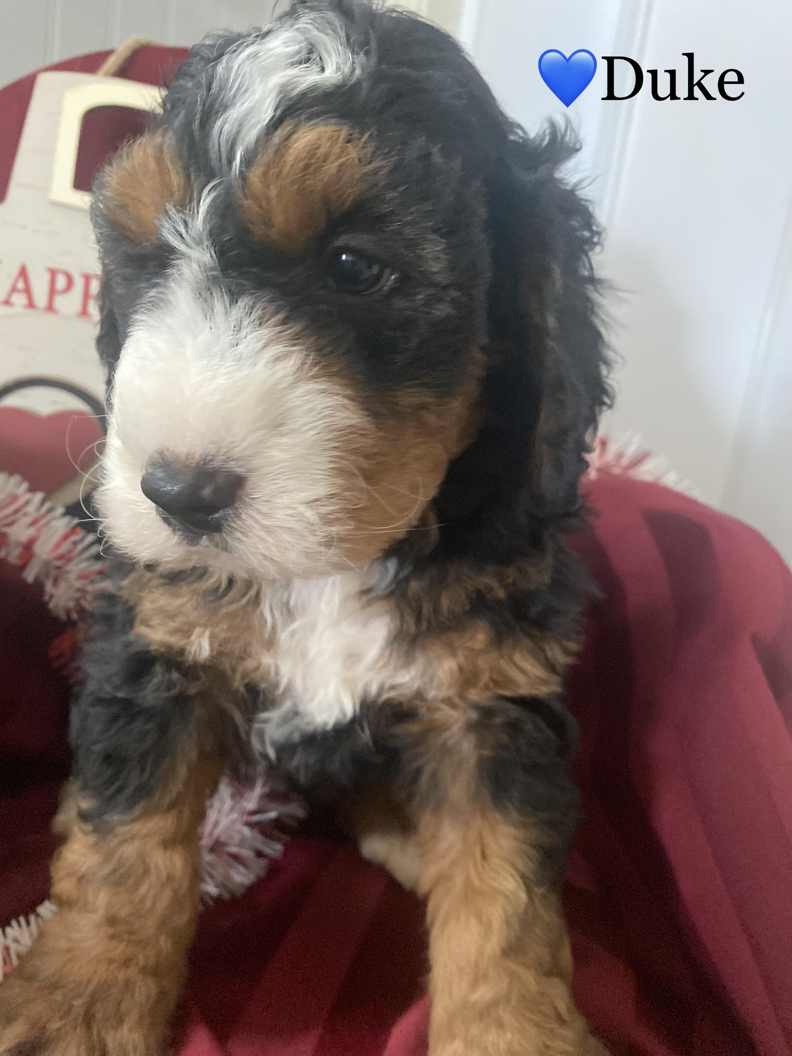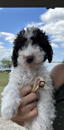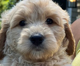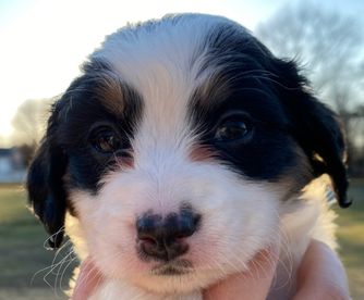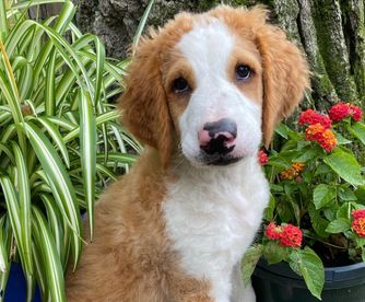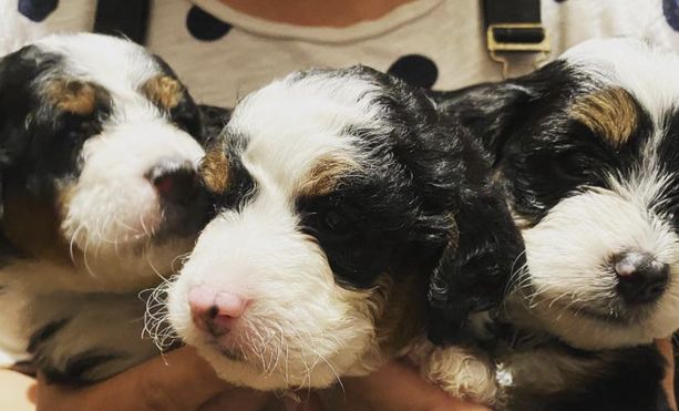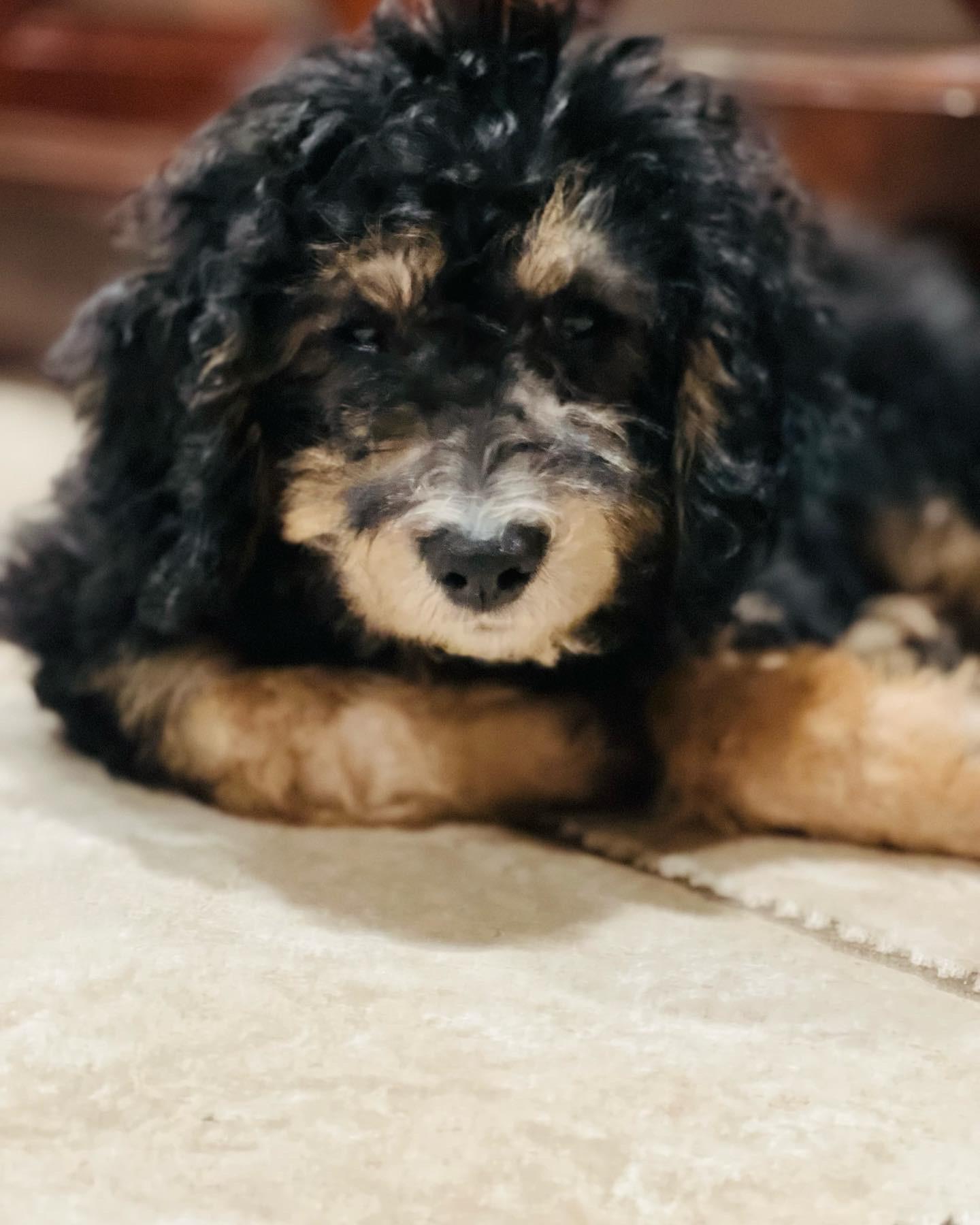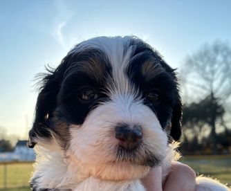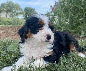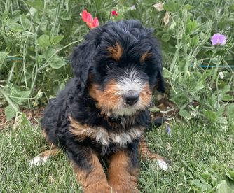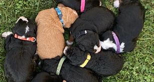 Our Assorted Doodle Crosses puppies include red phantom, red, chocolate, parti, black phantom, blue merle, merle, and black and white. Cavachon puppies include sable and white and tan and white. Bernedoodle puppies include black, black and white, tri-color, phantom, and merle. Goldendoodle puppies are apricot. Colors will vary depending on the parent dogs.