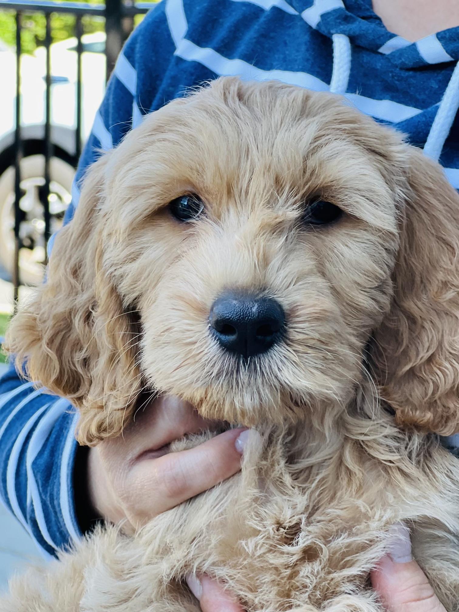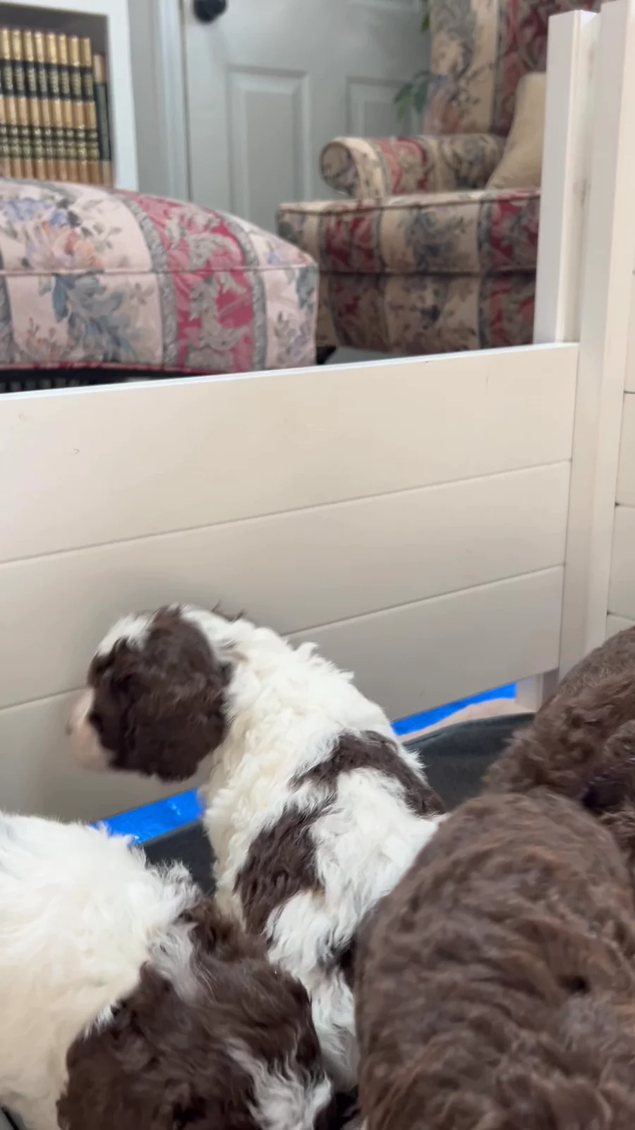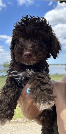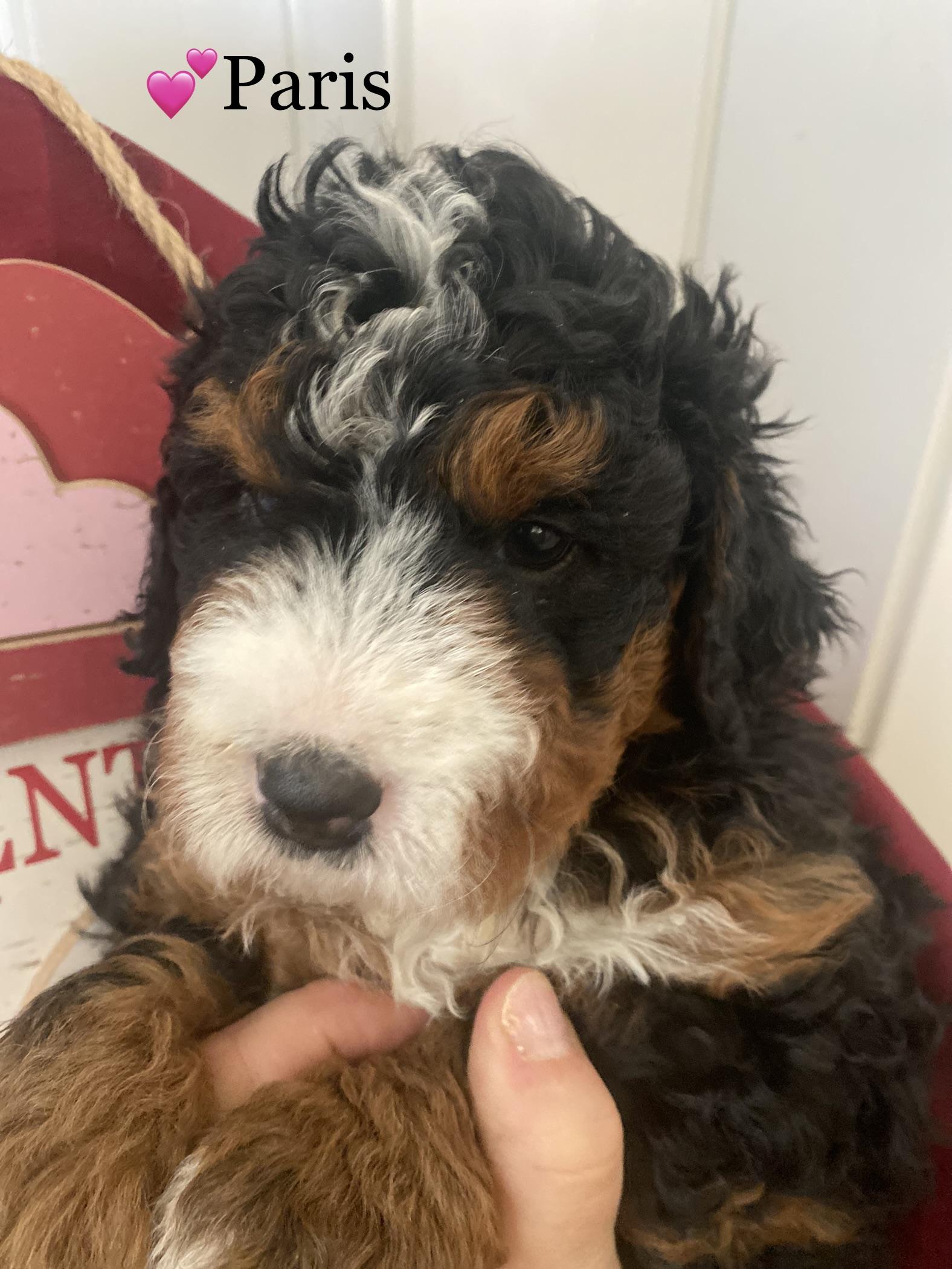 Our Assorted Doodle Crosses puppies include red phantom, red, chocolate, parti, black phantom, blue merle, merle, and black and white. Cavachon puppies include sable and white and tan and white. Bernedoodle puppies include black, black and white, tri-color, phantom, and merle. Goldendoodle puppies are apricot. Colors will vary depending on the parent dogs.