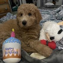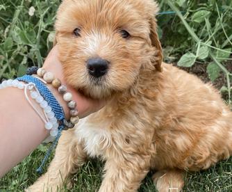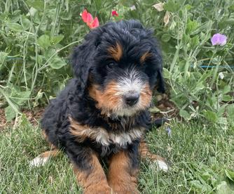 Our Bernedoodle puppies include mini and medium sizes. Goldendoodle puppies are medium size. Assorted Doodle Crosses puppies are miniature size. Sizes will vary depending on the parent dogs.