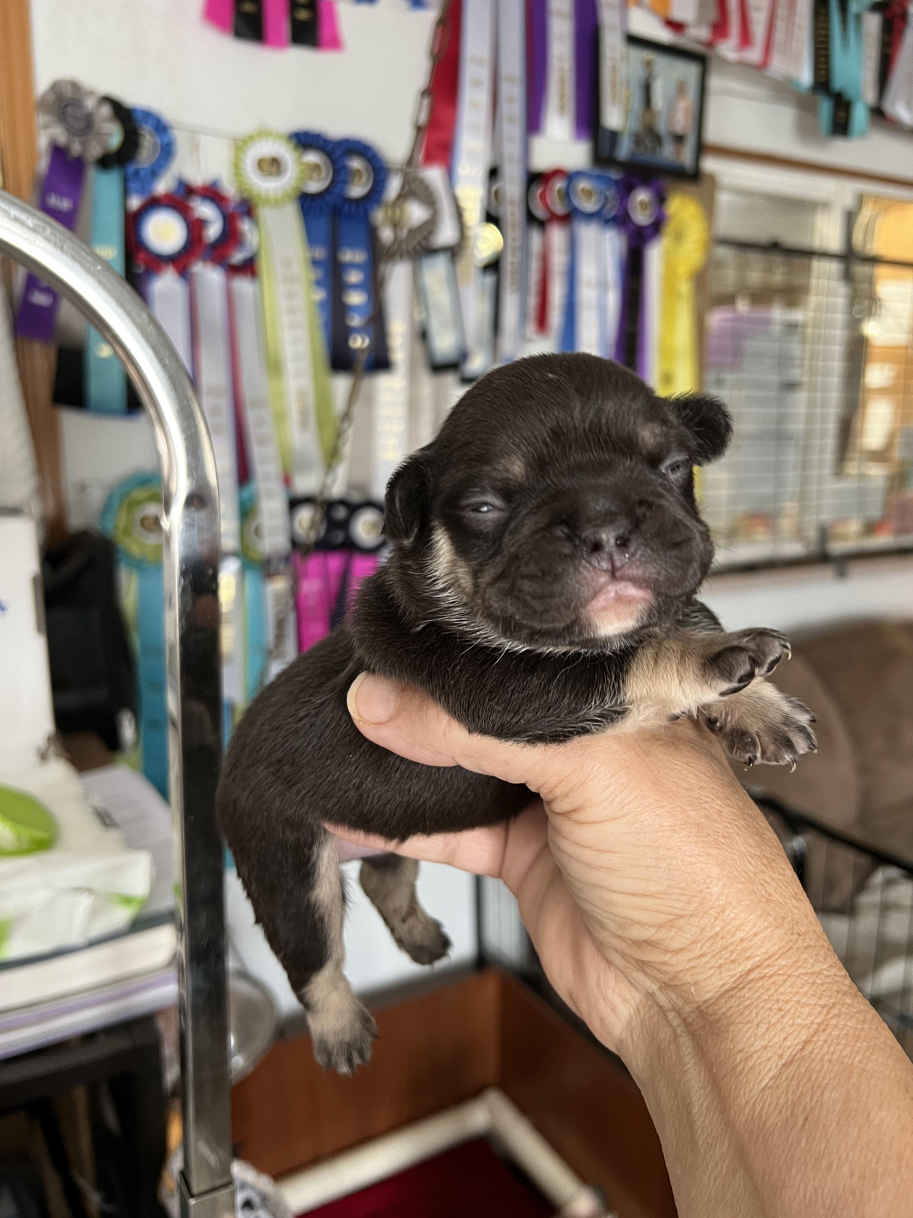 Epic is a male French Bulldog. Carefully selected as a great representative of his breed, Patricia decided to make him part of their program. Patricia has passed Good Dog’s screening process, which involved a review of their breeding practices, environment, and the mental and physical health of their dogs.