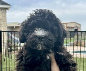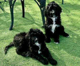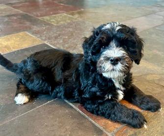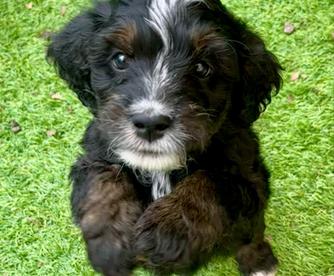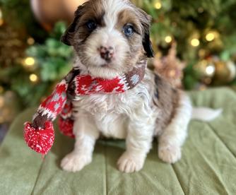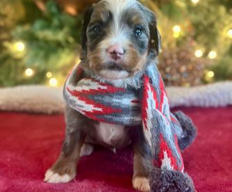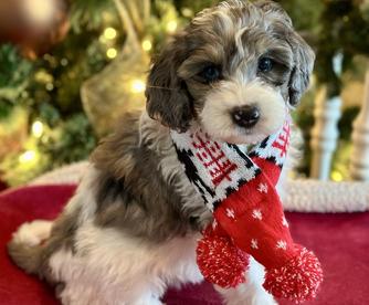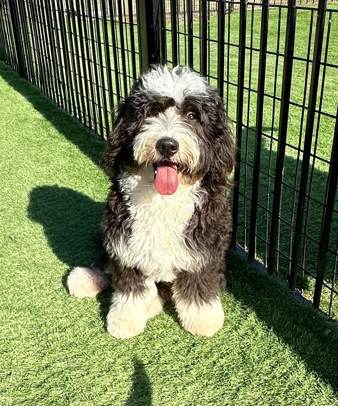 Our Aussiedoodle puppies include sable, brown and white, blue merle, red merle, black phantom, black and white, black tri-color, and red tri-color. Bernedoodle puppies include brown, sable, black, black and white, tri-color, phantom, blue merle, and merle. Colors will vary depending on the parent dogs.