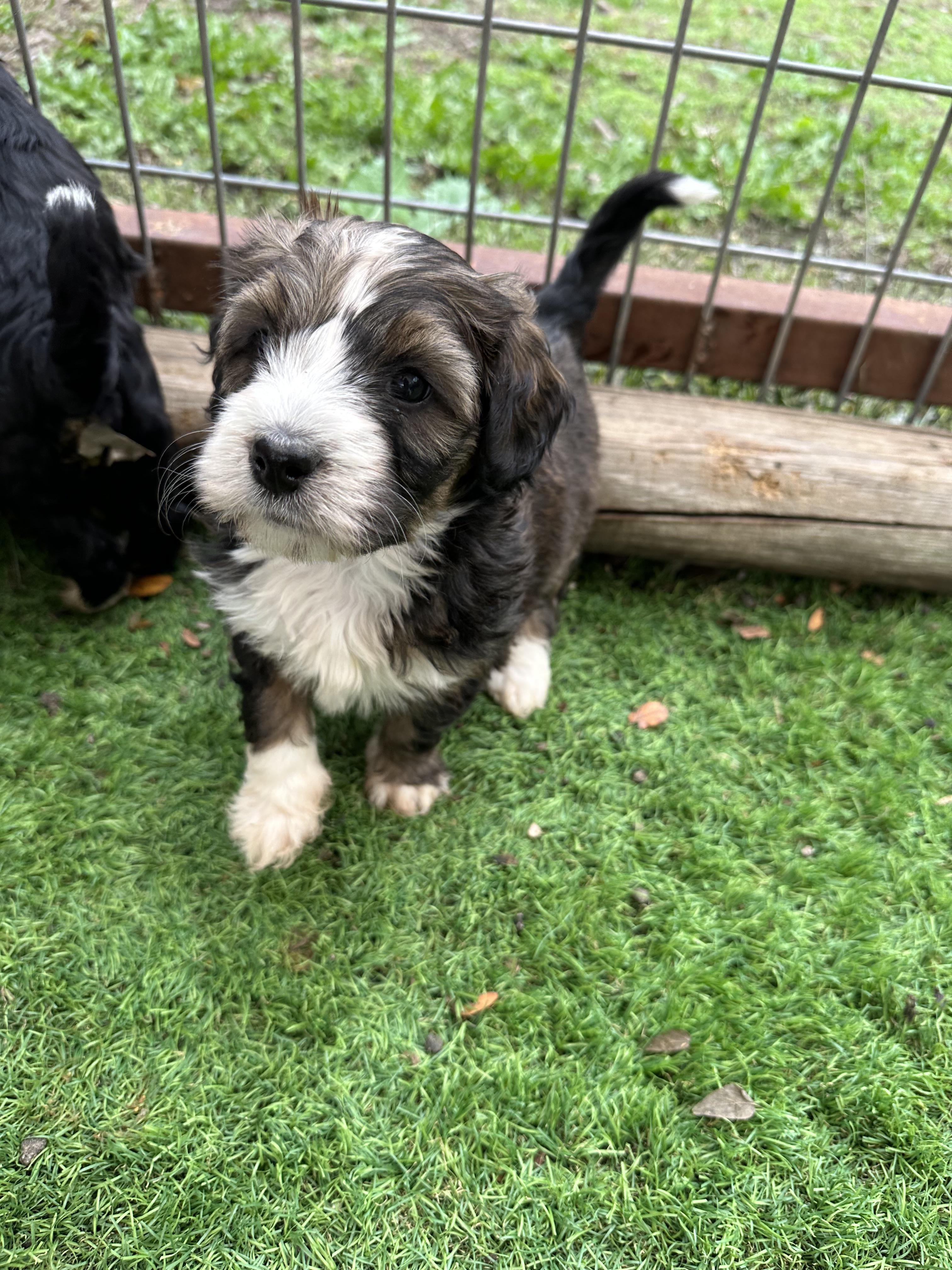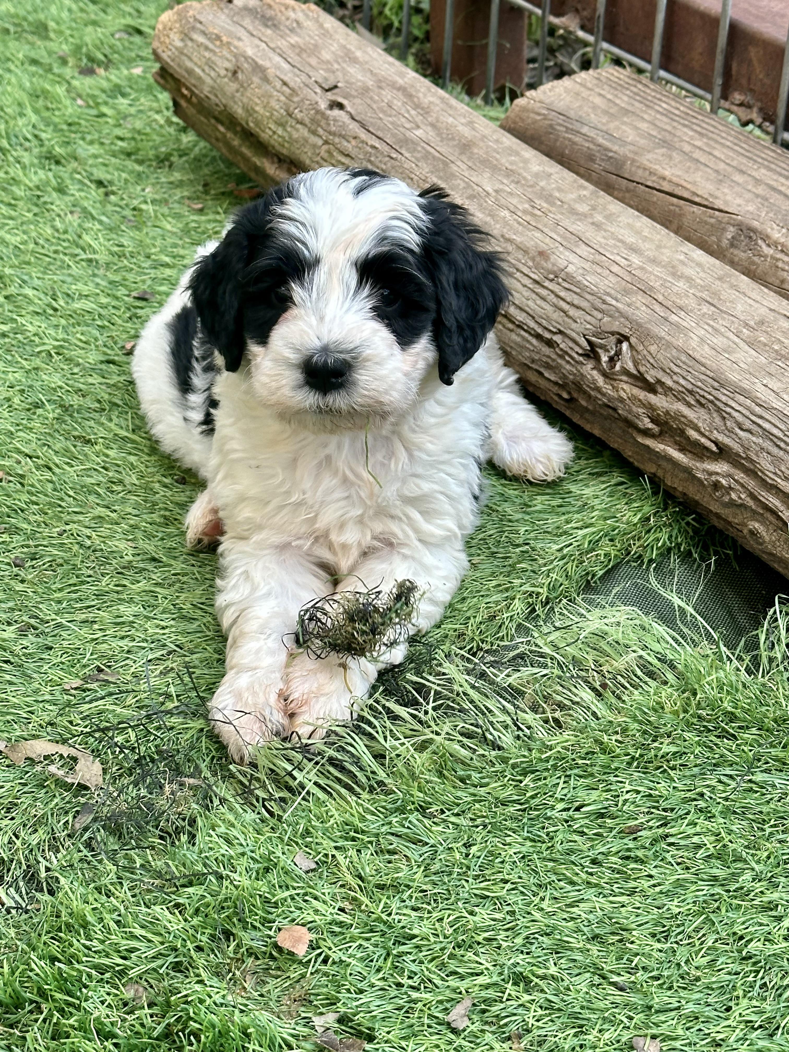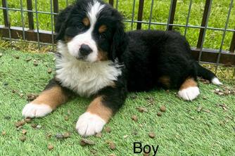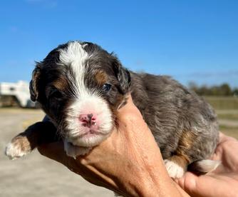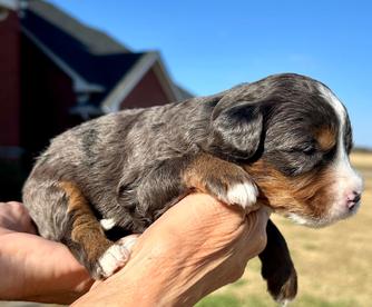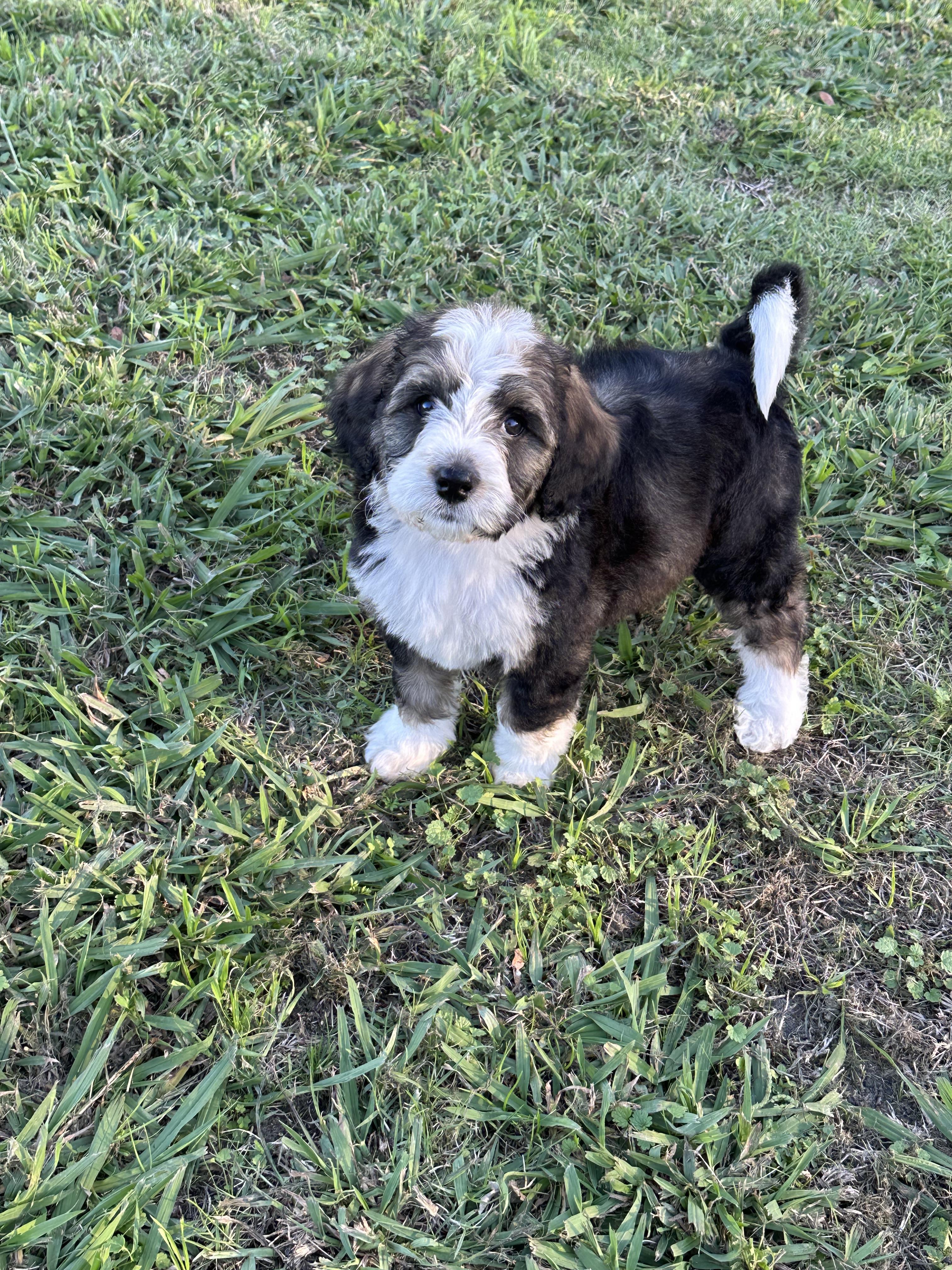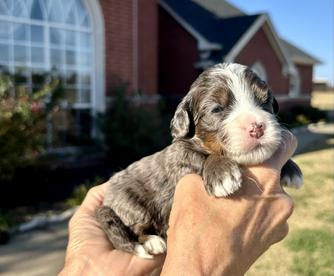 We had a wonderful experience getting our Bernedoodle puppy from Darla! She communicated clearly, answered all our questions, and sent us the sweetest videos leading up to pickup. You can truly tell she loves and cares for her dogs—they’re well socialized and raised with so much attention. She sent our puppy home with an amazing care package full of food, toys, a cozy blanket, and all the important paperwork. She even followed up afterward to check how we were settling in, which meant so much to us. We highly recommend Darla to anyone looking for a well-loved Bernedoodle!