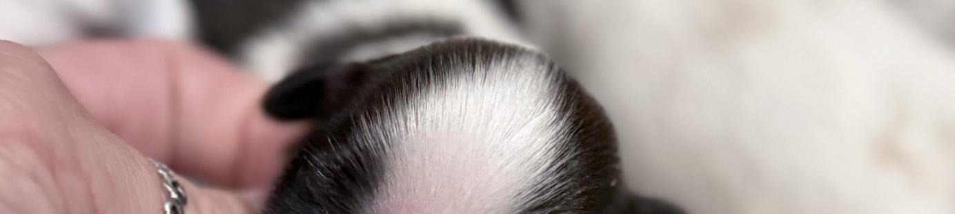Harper is a beautiful, Black & White Parti girl. She comes from champion and tiny lines combined and is 8lbs.