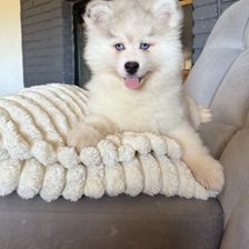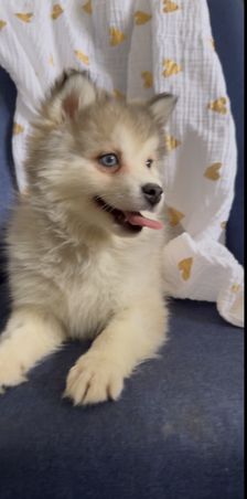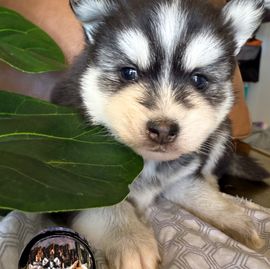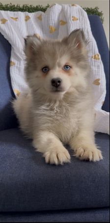 Working with Stephanie was a great experience. From the application process to coordinating flights, everything was a breeze. Our Pomsky has been such a great addition to the family. She is the perfect size of a Pomeranian but with the attitude of a husky!
