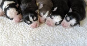 Our puppies include silver and white, silver, wolf sable, blue, lavender, white, black, black and white, chocolate, merle, and red and white. Colors will vary depending on the parent dogs.