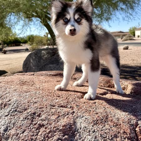 I'm Stephanie E., the breeder behind Platinum Pomskies located in Mesa, AZ. Platinum Pomskies is a well established breeding program that has been breeding pomskies since 2015. I am president of the American Pomsky Kennel Club (APKC). I have a passion for raising healthy well socialized Pomskies and mentoring other breeders.