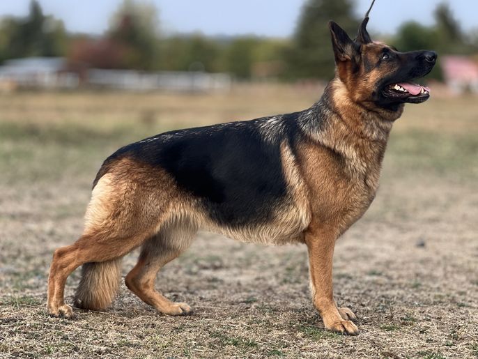 Hailing from distinguished bloodlines, Maggie's sire line boasts an impressive array of titles, with the added distinction of his father being a revered national champion. On her maternal side, Maggie's ancestry includes champions renowned for exceptional prowess in tracking and herding. The convergence of these diverse pedigrees creates a truly exceptional canine. From the German working lines, Maggie's dam carries the legacy of a titled K-9 police dog in her lineage, a testament to the innate intelligence and discipline that flow through Maggie's veins. Both sides of her lineage proudly bear an array of titles, a testament to their multifaceted abilities.