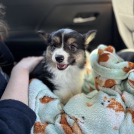 We love our new puppy Orange from Gabriela She did a fantastic job with crate & puppy pad training. We were amazed that he already was pad & crate trained so early. Gabriela also provided a case with his health records, a blanket and toy, as well as AKC information & breed info. He fits beautifully in our family and our other 2 Corgi’s love him, as well as the rest of our family. We would definitely recommend Gabriela as a breeder. Thank you.