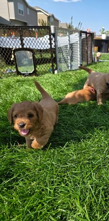 I'm Vaughn T., the breeder behind Playful Paws Labradoodles located in Commerce City, CO. Welcome to playful Paws Labradoodle – Denver's Quality Boutique Labradoodle Breeder, we do one thing Labradoodles! Seeking a healthy, truly special Labradoodle puppy in Denver?Nestled just north of Denver, we are a small, passionate breeder dedicated to raising exceptional Labradoodle companions. Unlike high-volume operations, we focus on just one carefully planned litter per year from our small family of breeding dogs: one male and two females, thoughtfully rotated for their health and wellbeing. Our trio has been specifically selected for their gentle,smart and playful temperament, with genuine attraction to their owners. Our trio starts with our handsome male: gen 2 labradoodle with striking red with white markings, boasting a classic, Lab-like appearance. He's paired thoughtfully with our two exceptional females: Ember, a gen 2 labradoodle with lighter reddish-tan beauty with more curl and distinct Poodle characteristics, and Raven, a gen 3 Labradoodle with sleek black/grey with white markings, showcasing a very Poodle-like, slim figure. This intentional combination of looks, coat types, and temperaments gives us a wonderful variety of colors (reds, apricots, blacks, greys, creams) and coat textures (wavy fleece to looser curls and straight coats) in each carefully planned litter. Health and wellness is our foundation: All our breeding dogs undergo comprehensive genetic health testing relevant to Labradoodles before breeding, ensuring we minimize the risk of serious inherited conditions in our puppies. This intimate scale allows us to pour unparalleled personal love and attention into every single puppy. From their earliest days, they benefit from gentle desensitization practices to build confidence and adaptability. They are lovingly pee- pad-trained for an easier transition to your home and come with their first vaccinations complete. To welcome your new family member, each puppy leaves with a special Care Package including a cozy blanket scented with their littermates and mother's scent, healthy treats, engaging toys, and a starter supply of premium puppy food. Plus, we're happy to connect you with trusted quality puppy training referrals in the Denver area. We believe in quality over quantity, raising healthy, well-socialized puppies destined to bring joy to your home. Discover the difference personalized care and genetic responsibility make.