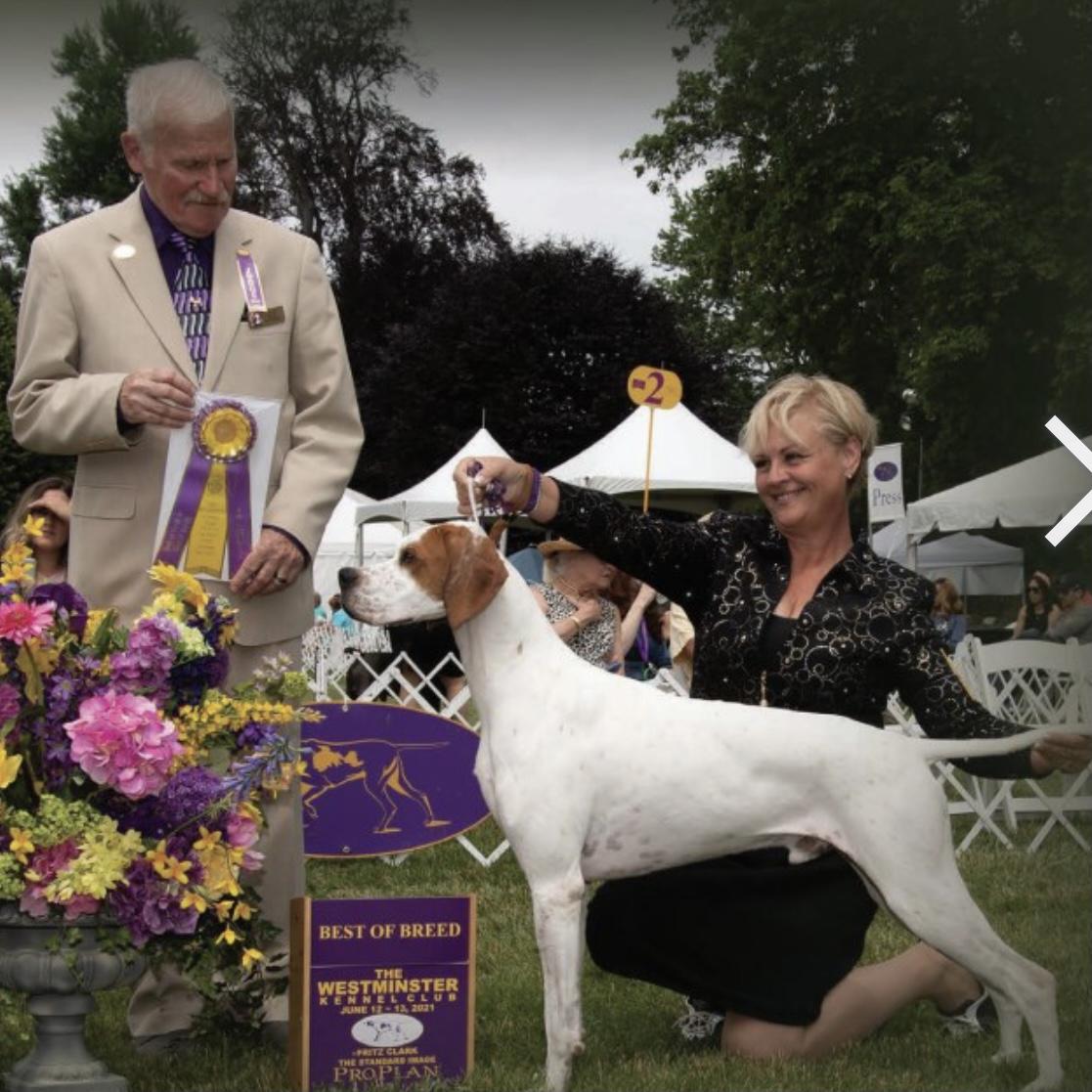Chalice is a male Pointer. Carefully selected as a great representative of his breed, Kimberly decided to make him part of their program. Kimberly has passed Good Dog’s screening process, which involved a review of their breeding practices, environment, and the mental and physical health of their dogs.