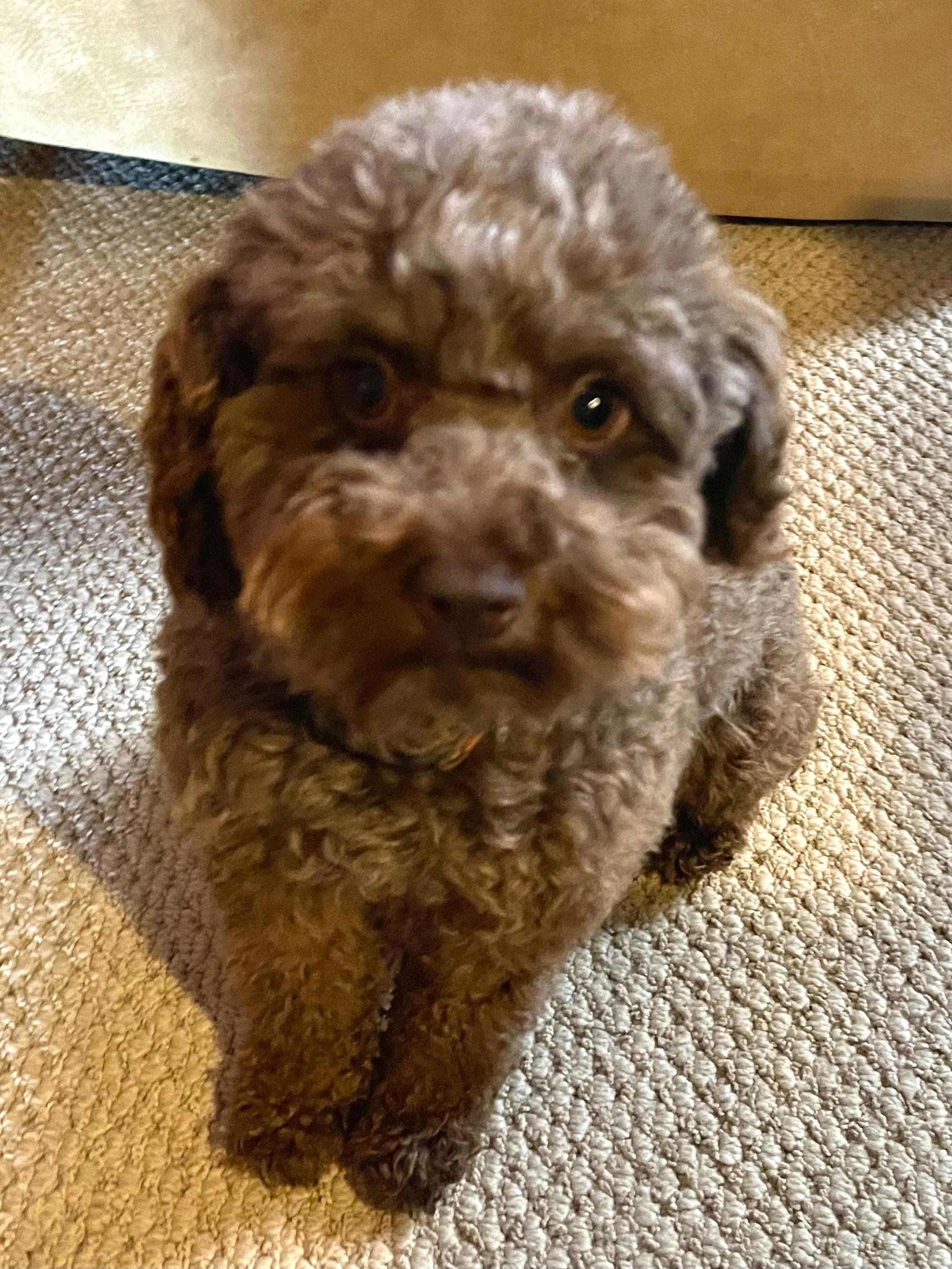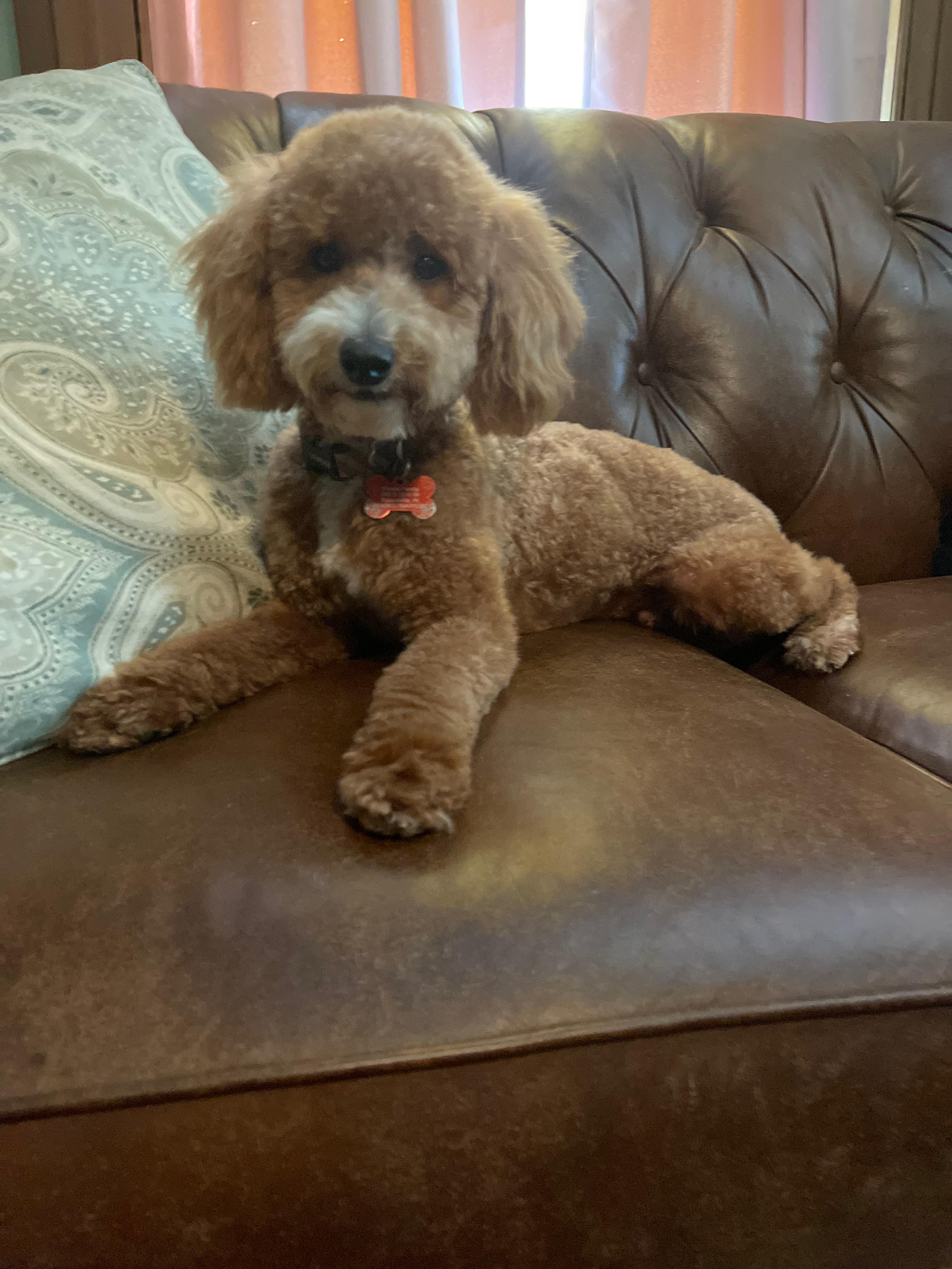 Charlie is an apricot miniature poodle, with some tuxedo markings. His health screenings are all clear, he is a healthy happy boy!