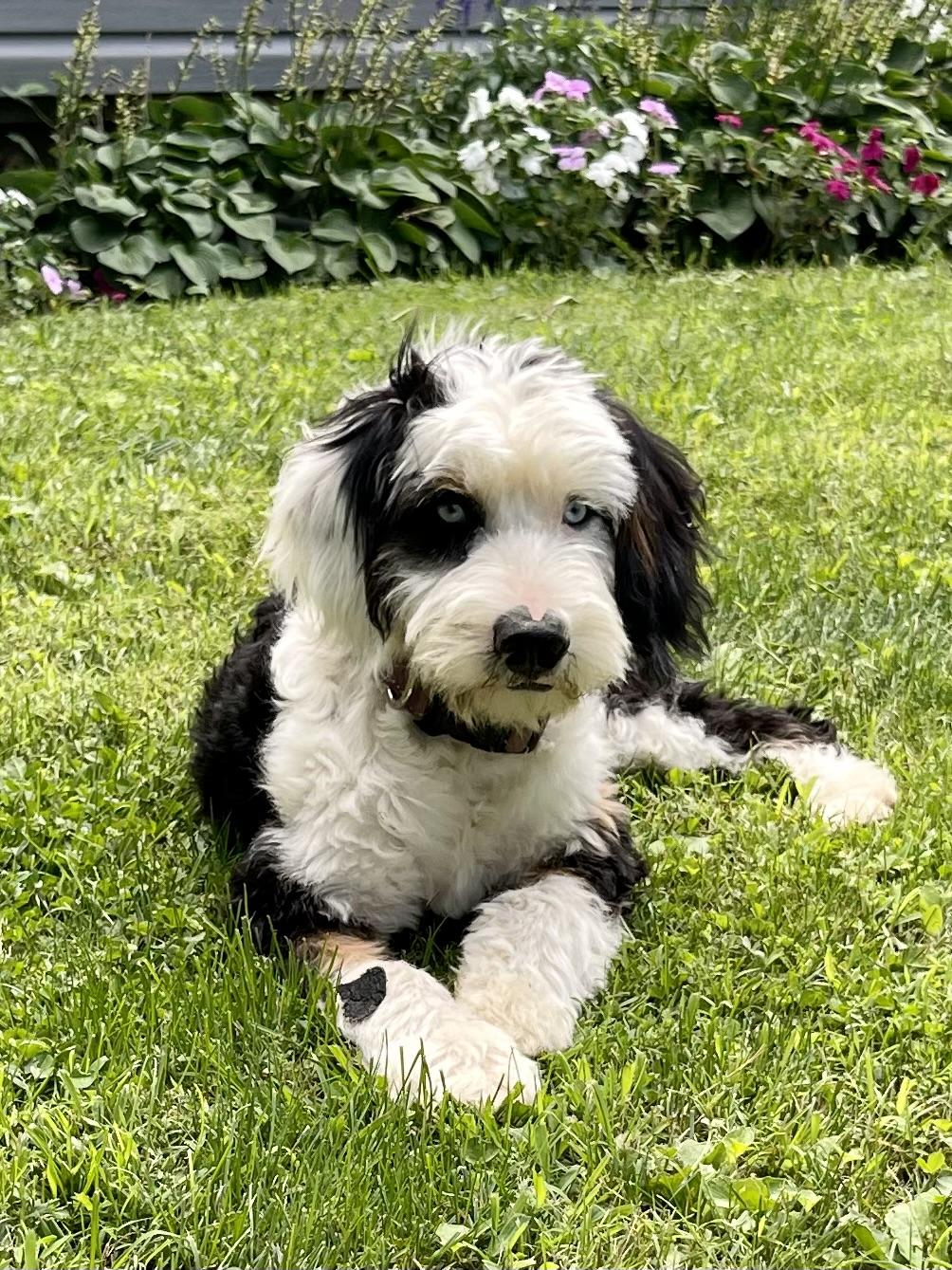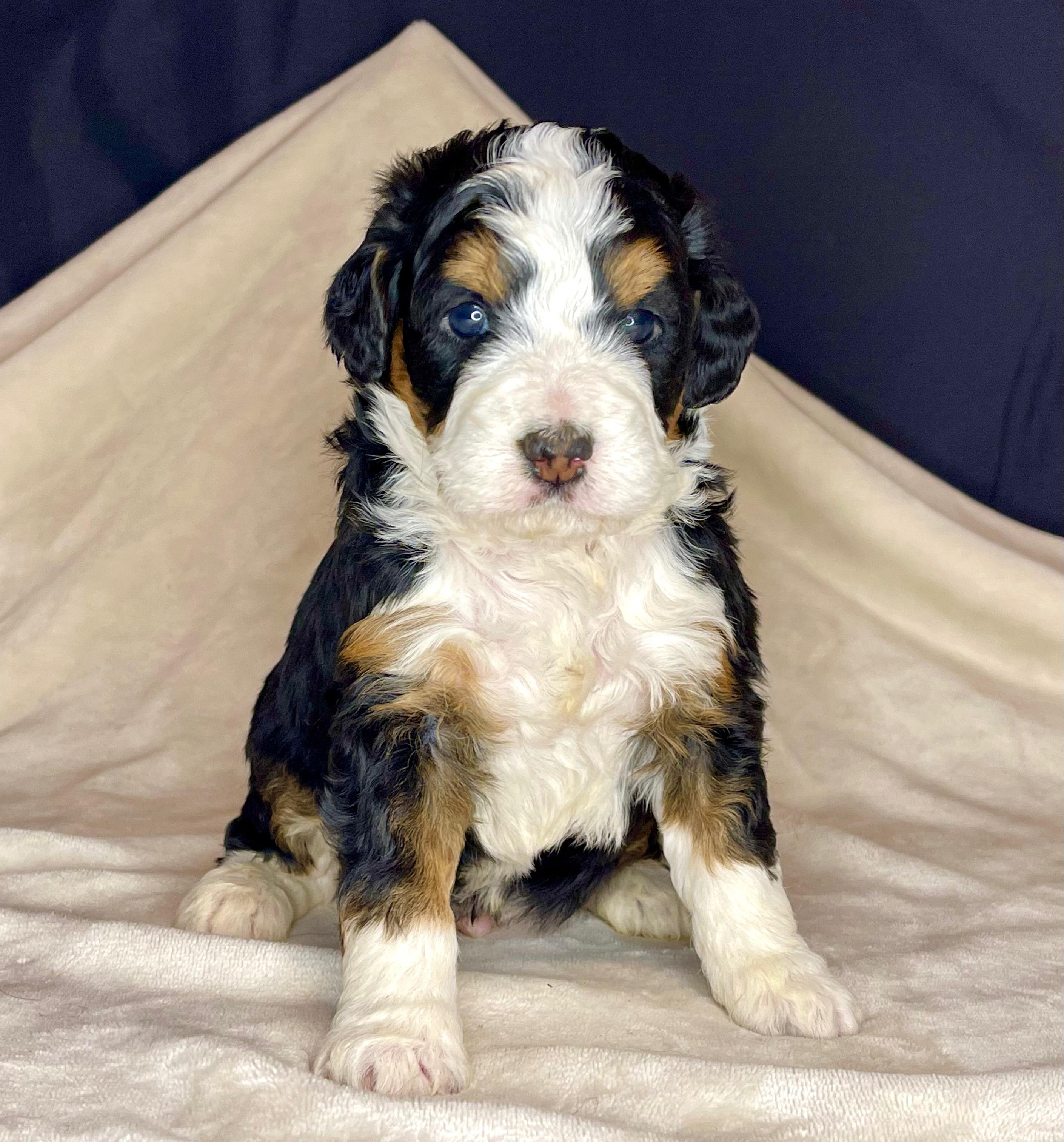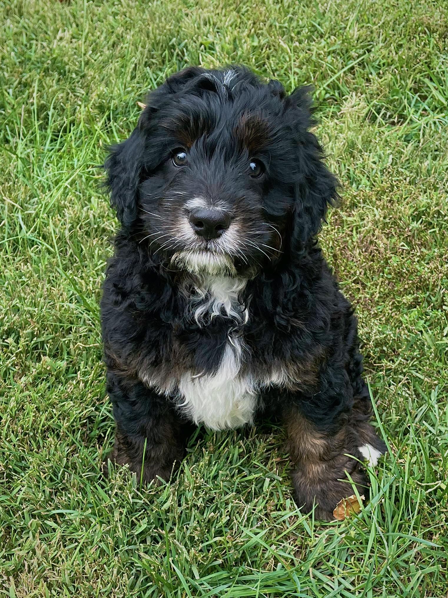 Opal is a small F1 minibernedoodle that we raised ourselves. She has an extremely calm and affectionate demeanor that is shared with her babies.