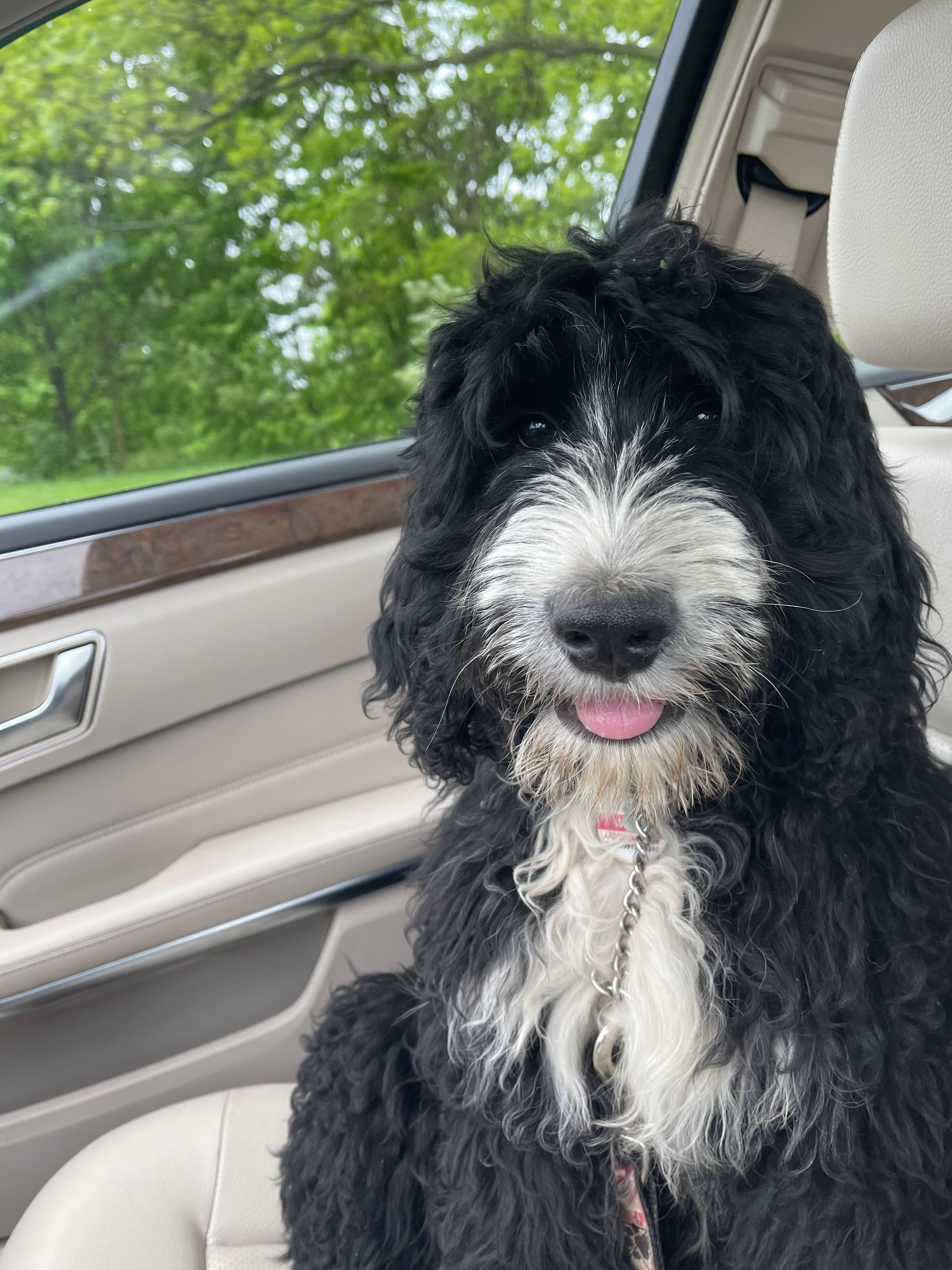 Wilma is a standard bernedoodle. She is a great dog, has a great, loving personality, and is a great mom.