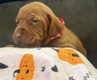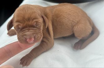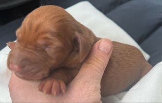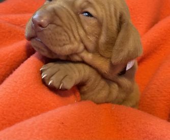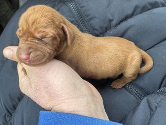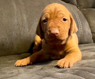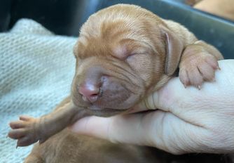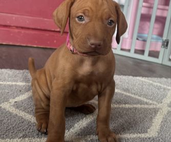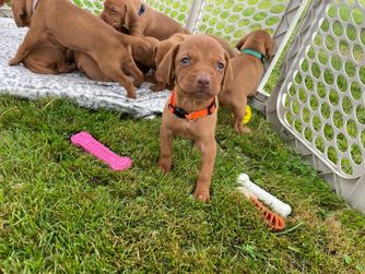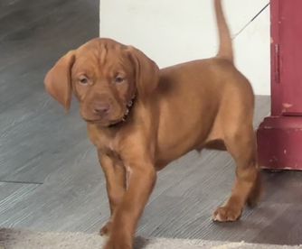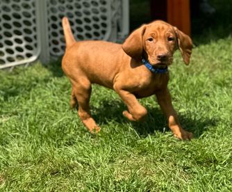 Redik is a female Vizsla. Carefully selected as a great representative of her breed, Sara decided to make her part of their program. Sara has passed Good Dog’s screening process, which involved a review of their breeding practices, environment, and the mental and physical health of their dogs.