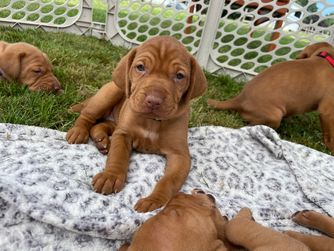 Buck is a male Vizsla. Carefully selected as a great representative of his breed, Sara decided to make him part of their program. Sara has passed Good Dog’s screening process, which involved a review of their breeding practices, environment, and the mental and physical health of their dogs.