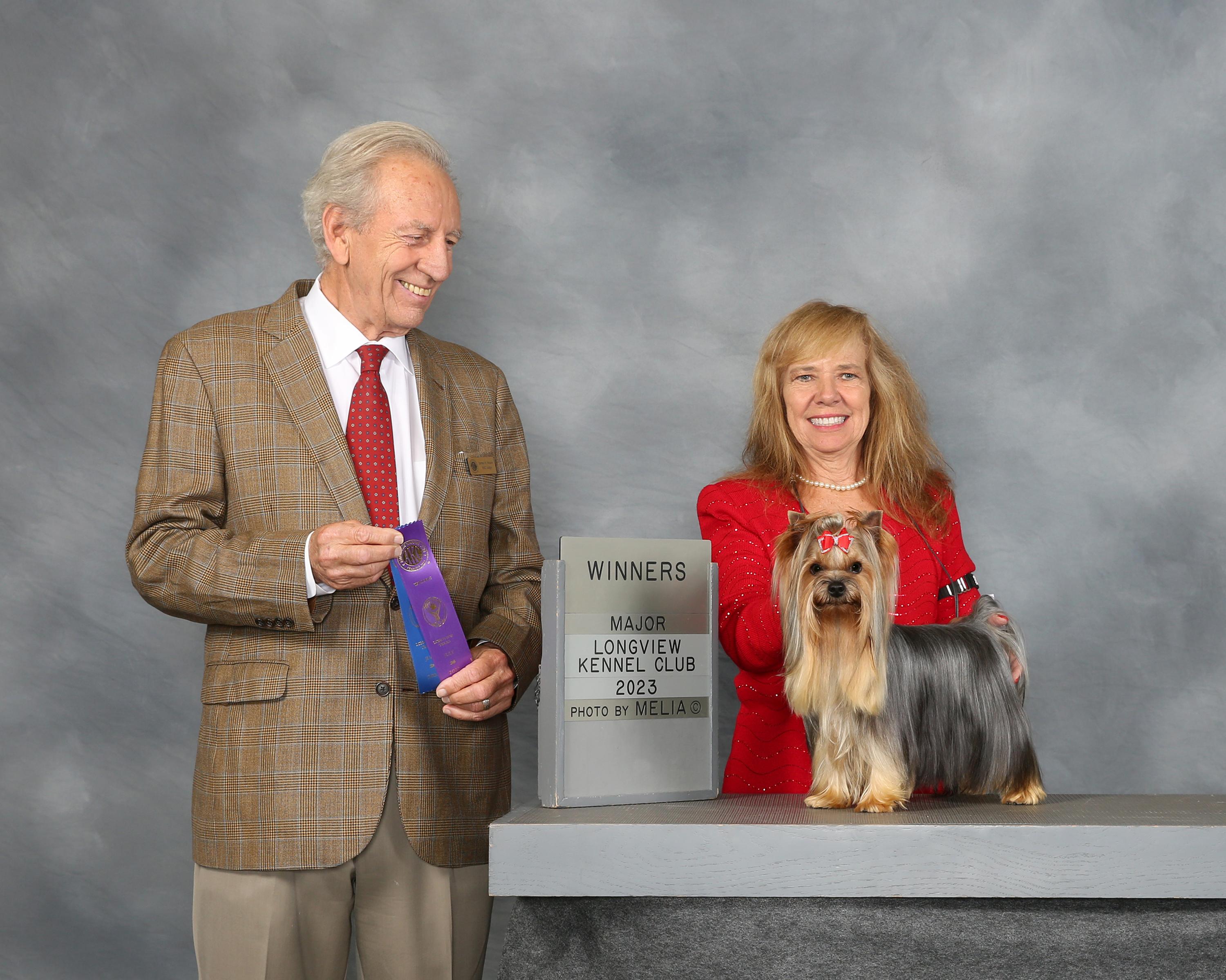 I love showing the Yorkshire Terriers. So eventually I wanted to breed my own show dogs. I have several AKC Champions.