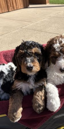 Rebecca was wonderful to work with from day one! She was very responsive before we even made a deposit, answering any and all questions we had before giving one of her puppies a forever home. After speaking with her and doing a video chat to meet the puppy we was interested in we had no doubt that we had found our fur baby and even more sure we was in good hands with Rebecca. As the time to pick up our puppy came closer and closer she sent pictures, a video and even updates on shots. We have had our puppy, Gus for about 4 weeks and have had an absolute blast with him. He is smart….will already sit for his treats, he is already using the bathroom outside, and showing his large personality. All this due I’m 100 percent sure to Rebecca’s years of interaction with Bernedoodles ! Me and my fiancée will forever be thankful to Rebecca for helping us complete our little family!