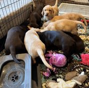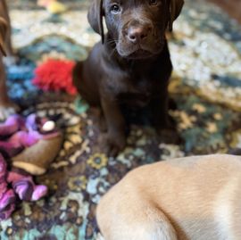Our puppies include chocolate and yellow. Colors will vary depending on the parent dogs.