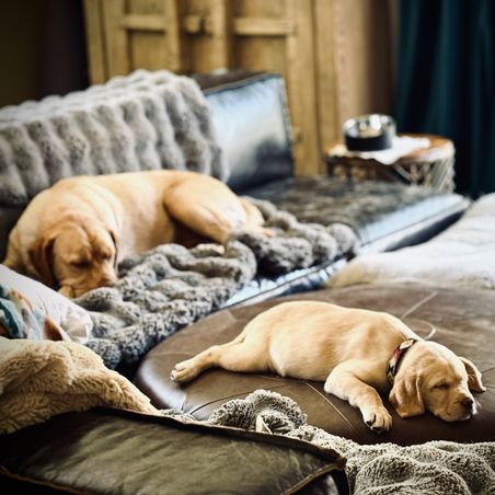 Our dogs are all DNA/health tested prior to breeding. Puppies are hand raised within our home. Enrichment and training begins around 3 weeks of age. Puppies are paired accordingly with families giving them the best outcome for a long happy healthy life.