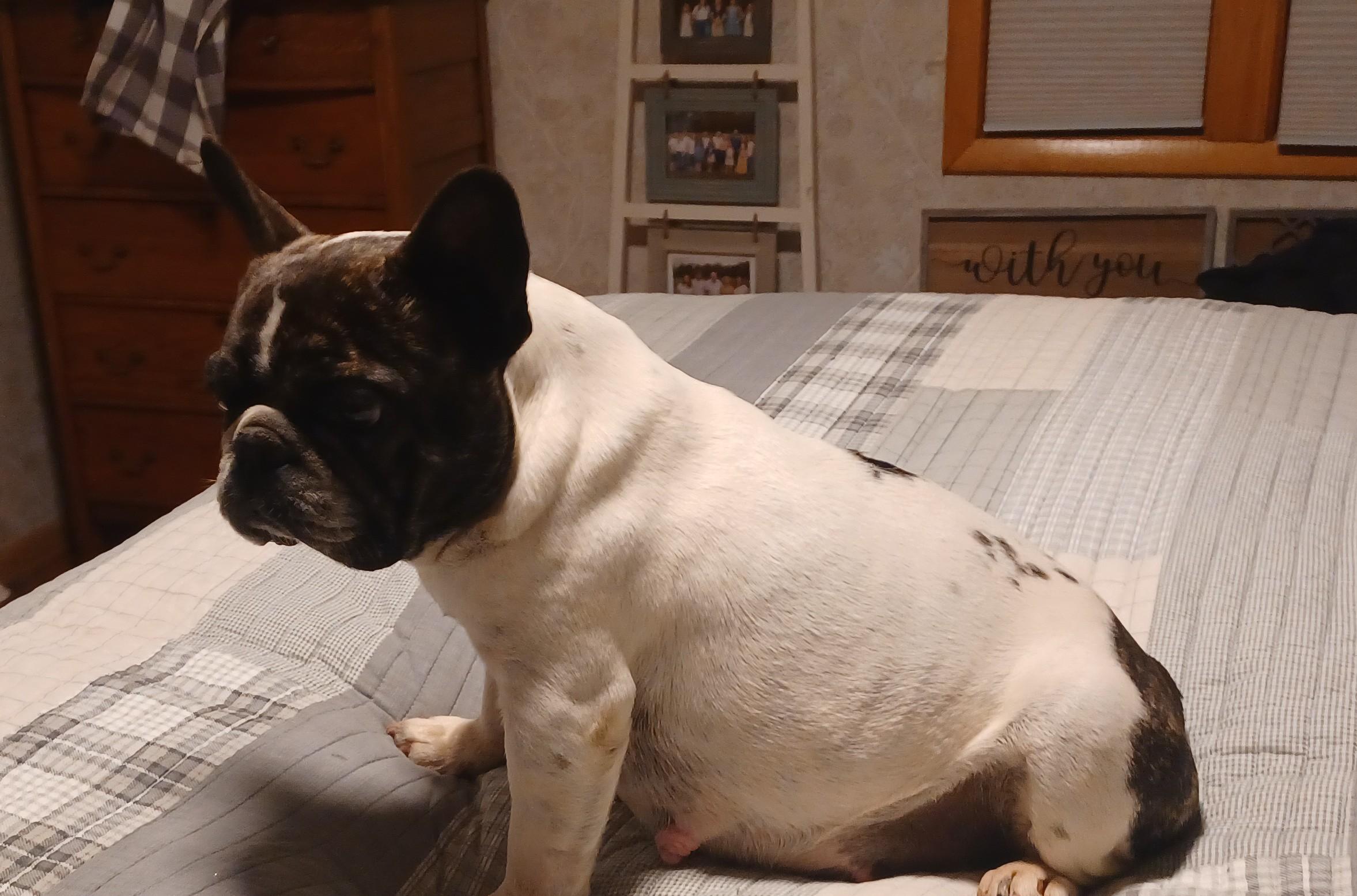 Pig is a female French Bulldog. Carefully selected as a great representative of her breed, Tina decided to make her part of their program. Tina has passed Good Dog’s screening process, which involved a review of their breeding practices, environment, and the mental and physical health of their dogs.