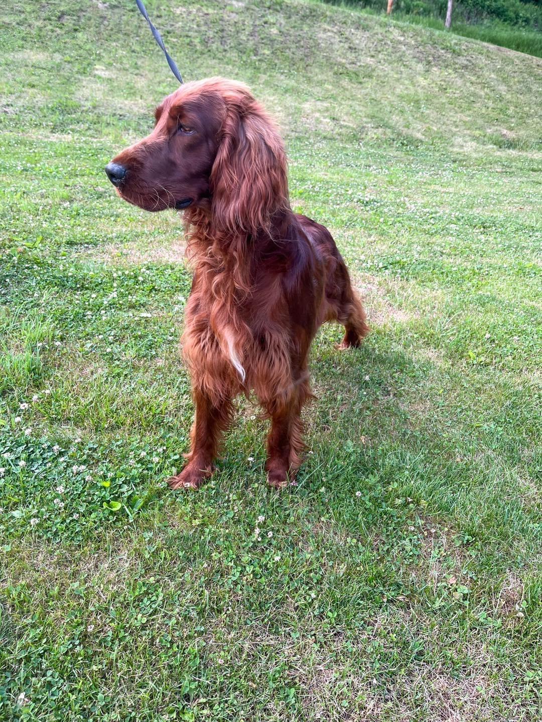 Moose is a male Irish Setter. Carefully selected as a great representative of his breed, Kiersten decided to make him part of their program. Kiersten has passed Good Dog’s screening process, which involved a review of their breeding practices, environment, and the mental and physical health of their dogs.