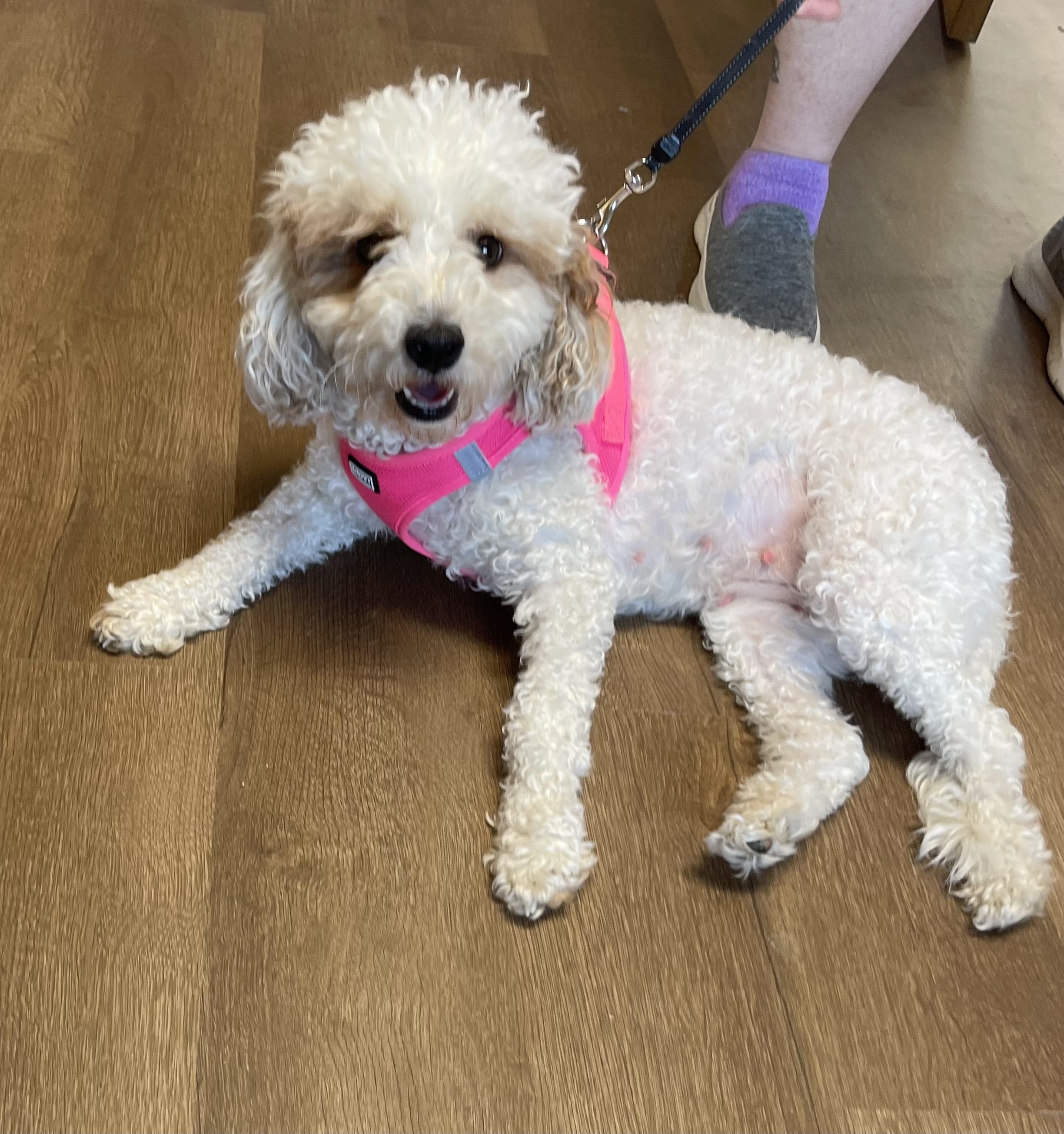 Lucy is a sweet mini goldendoodle that enjoys her life as a spoiled house dog. She enjoys going for rides and spending time with her guardian family on walks and journeys.