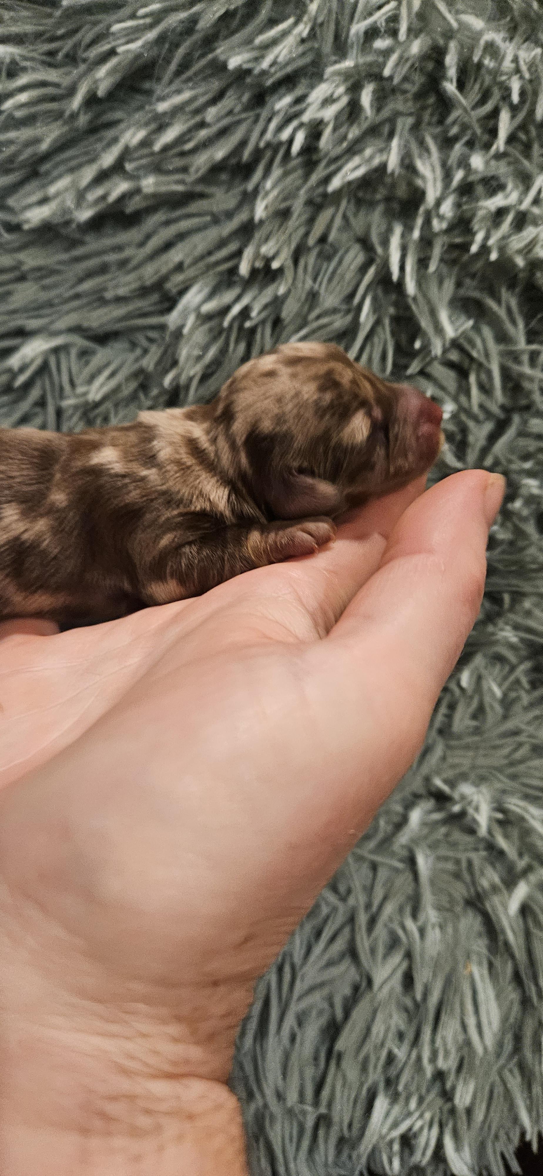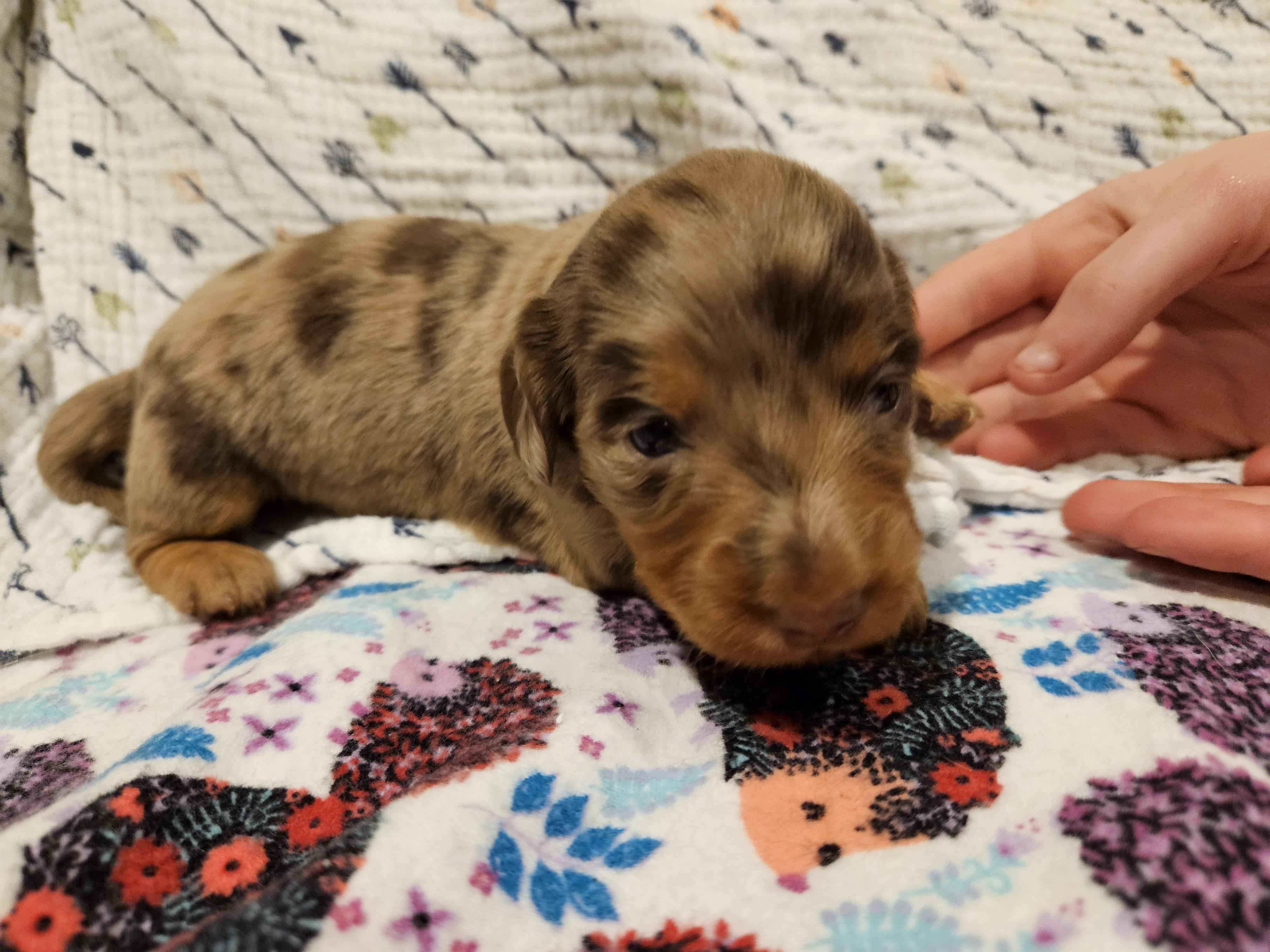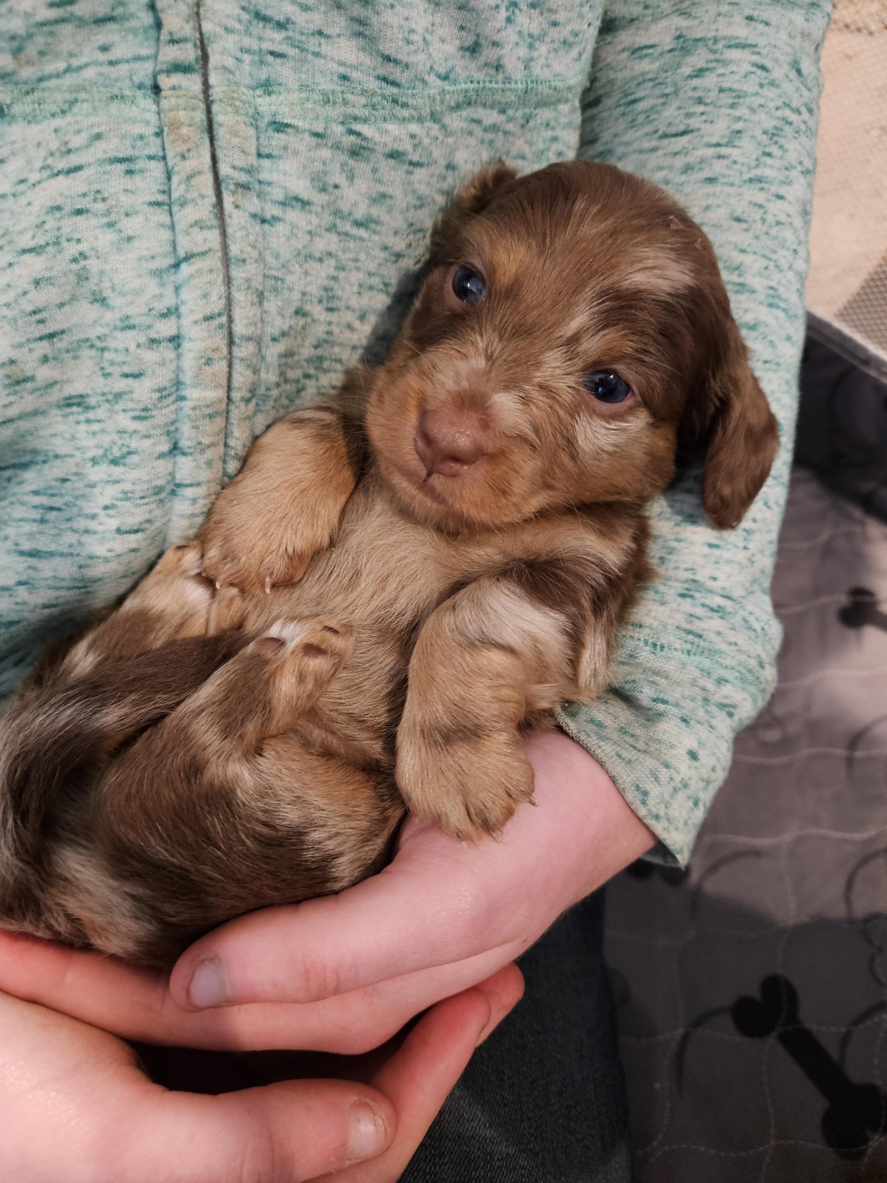Maple “Tinkerbell” is soo cute! I’ve been wanting a Doxie for so long and I’m so happy I was able to get one through Erin. She was very communicative and was willing to answer anything I asked!