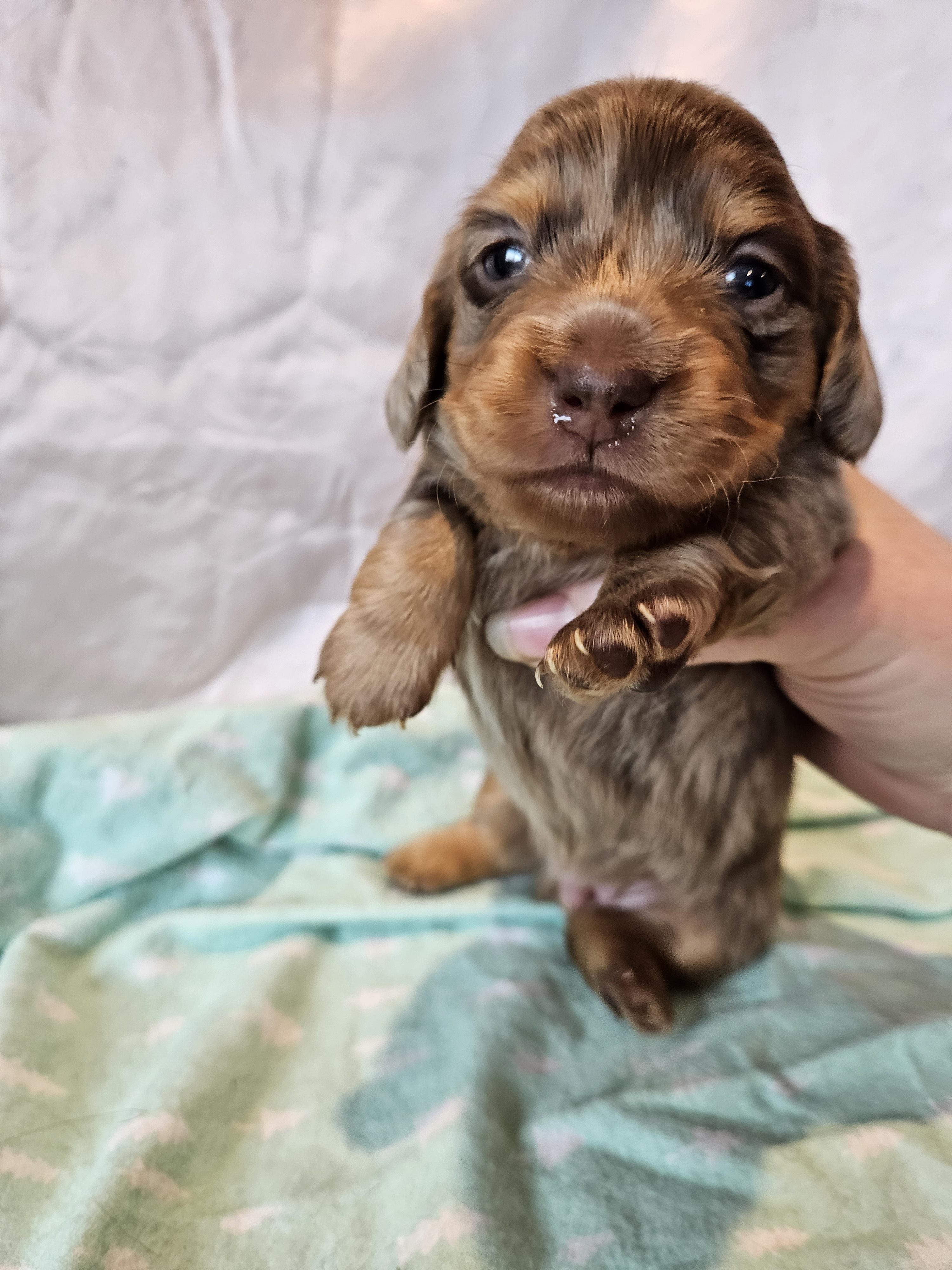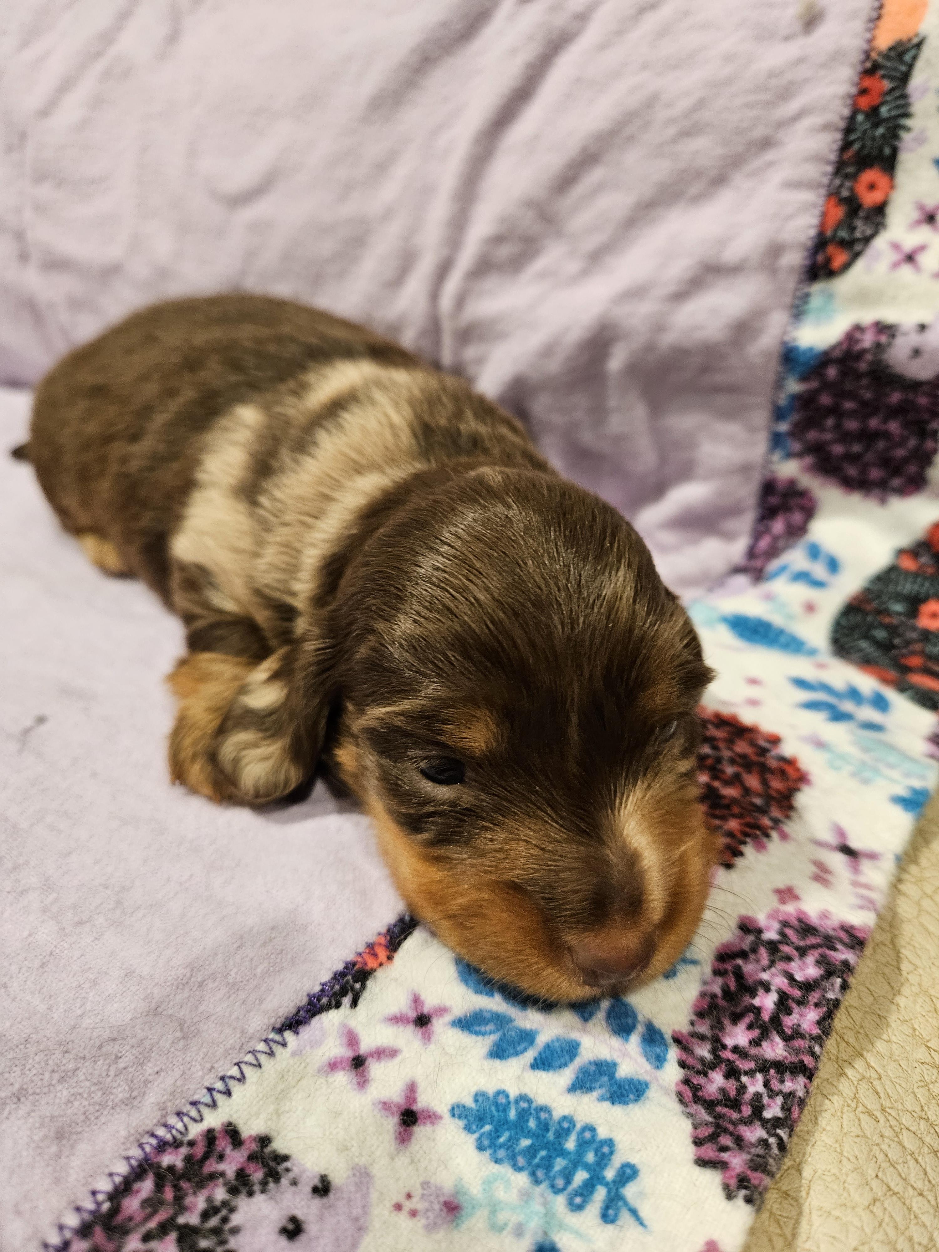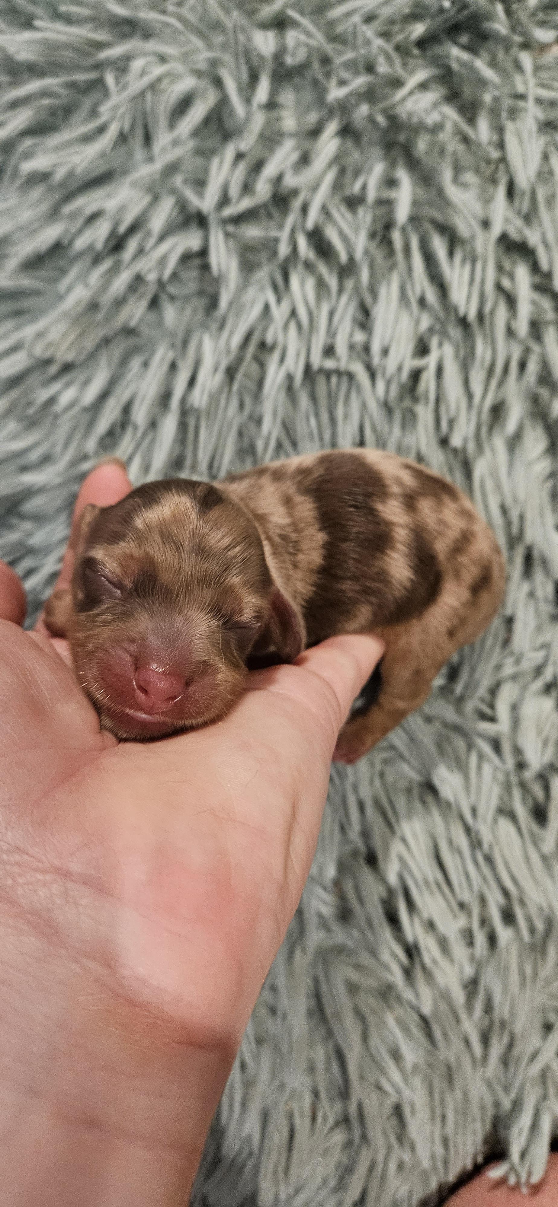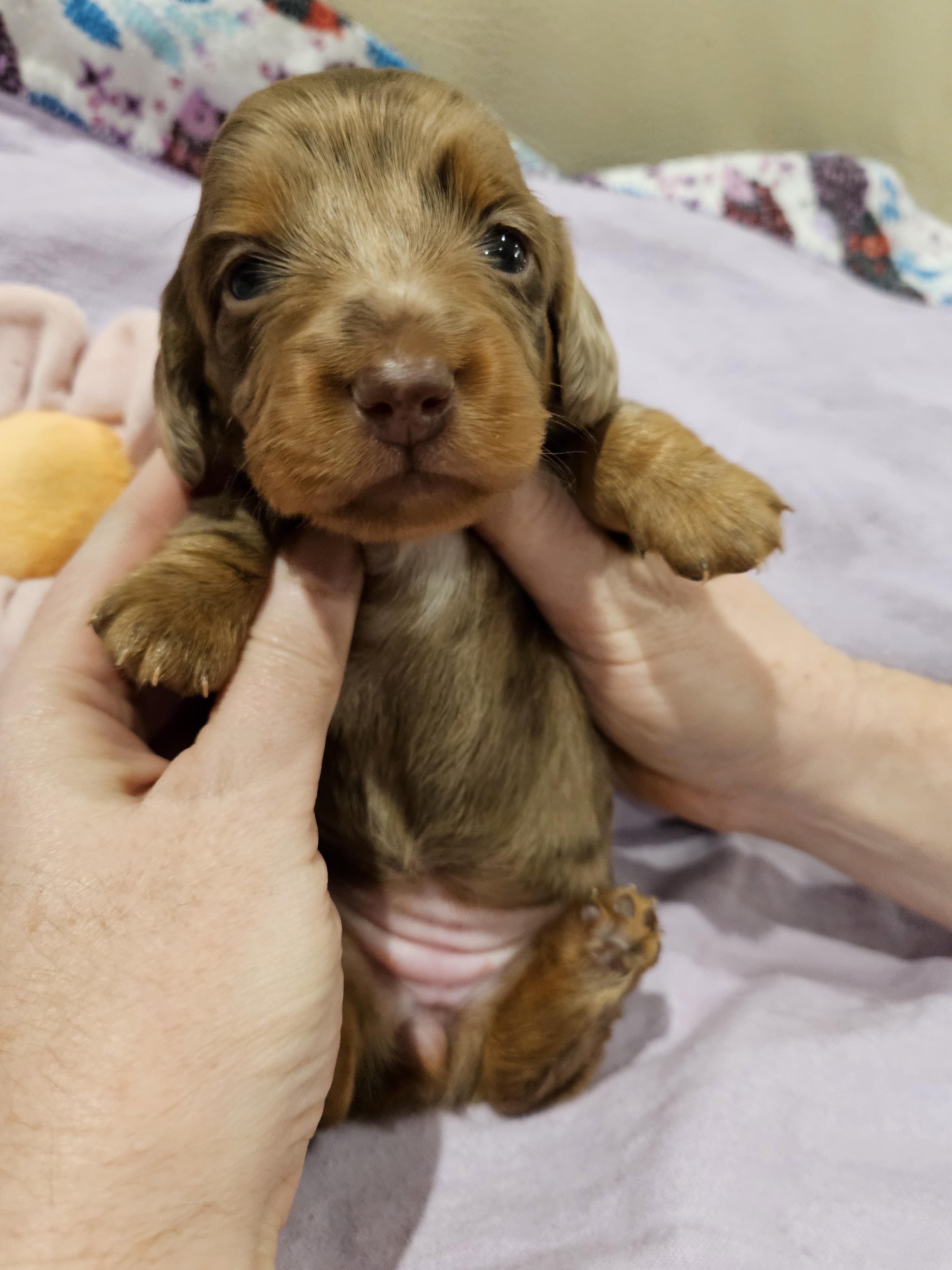 Maple “Tinkerbell” is soo cute! I’ve been wanting a Doxie for so long and I’m so happy I was able to get one through Erin. She was very communicative and was willing to answer anything I asked!