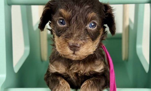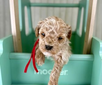 Ginger is our stunning red abstract small mini poodle — a sweet bundle of charm and personality wrapped in a gorgeous, unique coat. She has a rich, warm red color with striking abstract patterns that make her one-of-a-kind. Ginger is affectionate and loves attention, yet she also has a playful, curious side that keeps life fun. Smart and gentle, she bonds quickly with her family and thrives on companionship. Her small stature makes her perfect for cuddles, and her spirited personality brings joy to everyone around her.